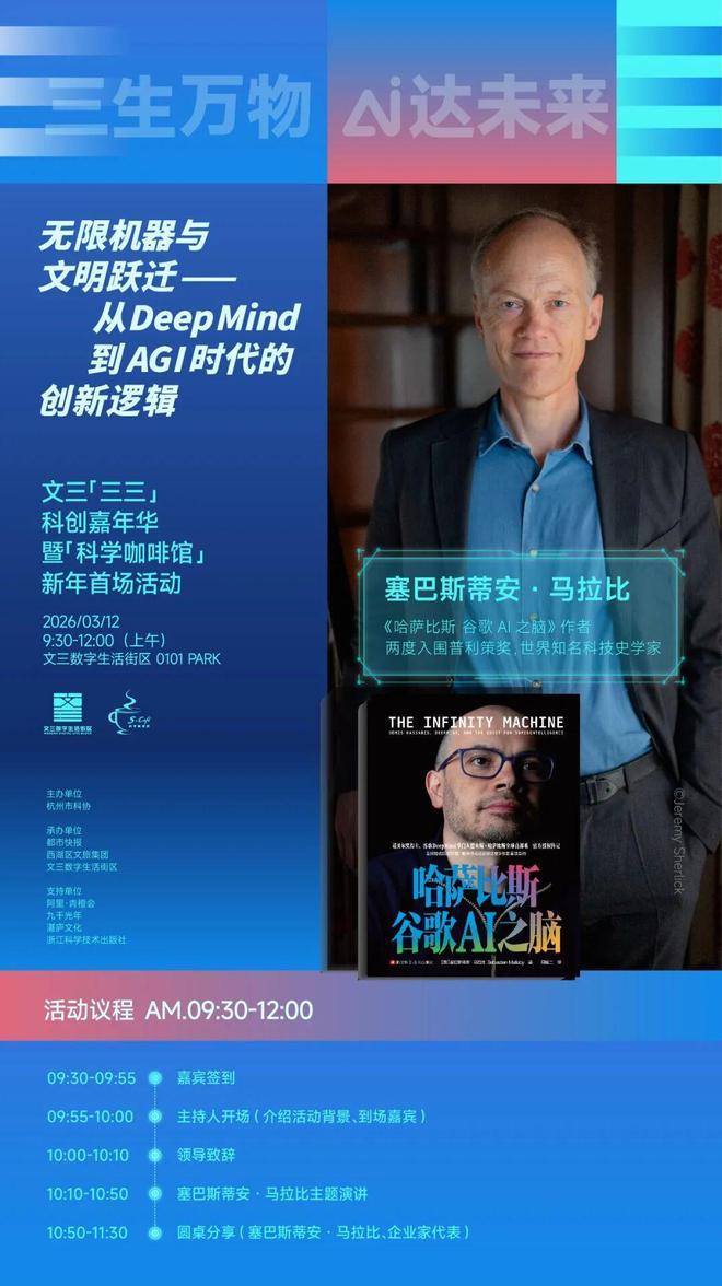 届时还将有杭州的科技型企业家和马拉比进行圆桌对谈:浙大研究员、神踪科技创始人孙煜畅聊AI与脑科学的未来,哈萨比斯设想的“活到150岁”是科幻还是倒计时?阿里青橙会创始人胡伟将分享在AGI的黎明前夜,顶尖创新者的焦虑是什么。