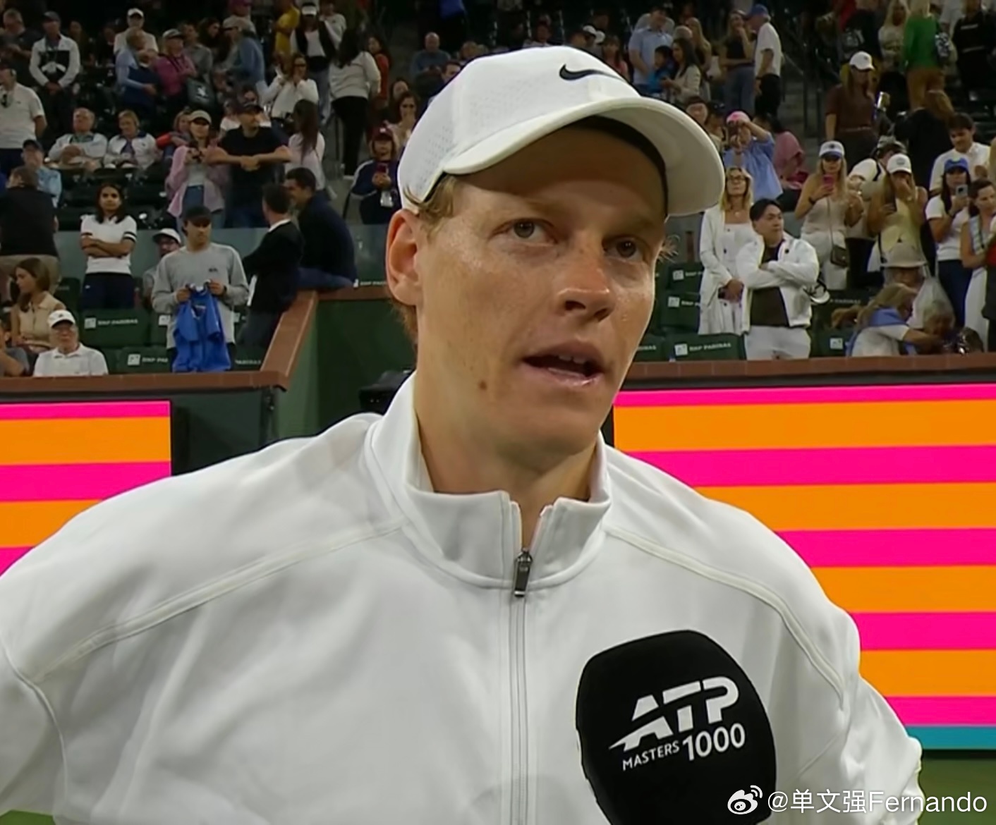 辛纳:丰塞卡和勒纳·钱是网球运动的未来!Jannik刚刚在IW印第安维尔斯16进8双抢七击败19岁巴西新星丰塞卡,赛后现场采访先聊到了比赛,两边都很powerful有火力🔥夸赞丰塞卡发球很棒,可能第二盘最后有点掉,自己的强度在第二盘也有些掉,但整体还是很高兴能晋级!说到1/4决赛要面对Learner钱,辛纳说这会是他职业生涯很多次八强的其中第一次,钱是很有进步的球员,丰塞卡和钱是我们这项运动的未来,我也很高兴让自己再次来到大师赛八强这个位置,会是一个大场面,自从上次和Learner交手后,他又进步了不少,希望会是一场好比赛