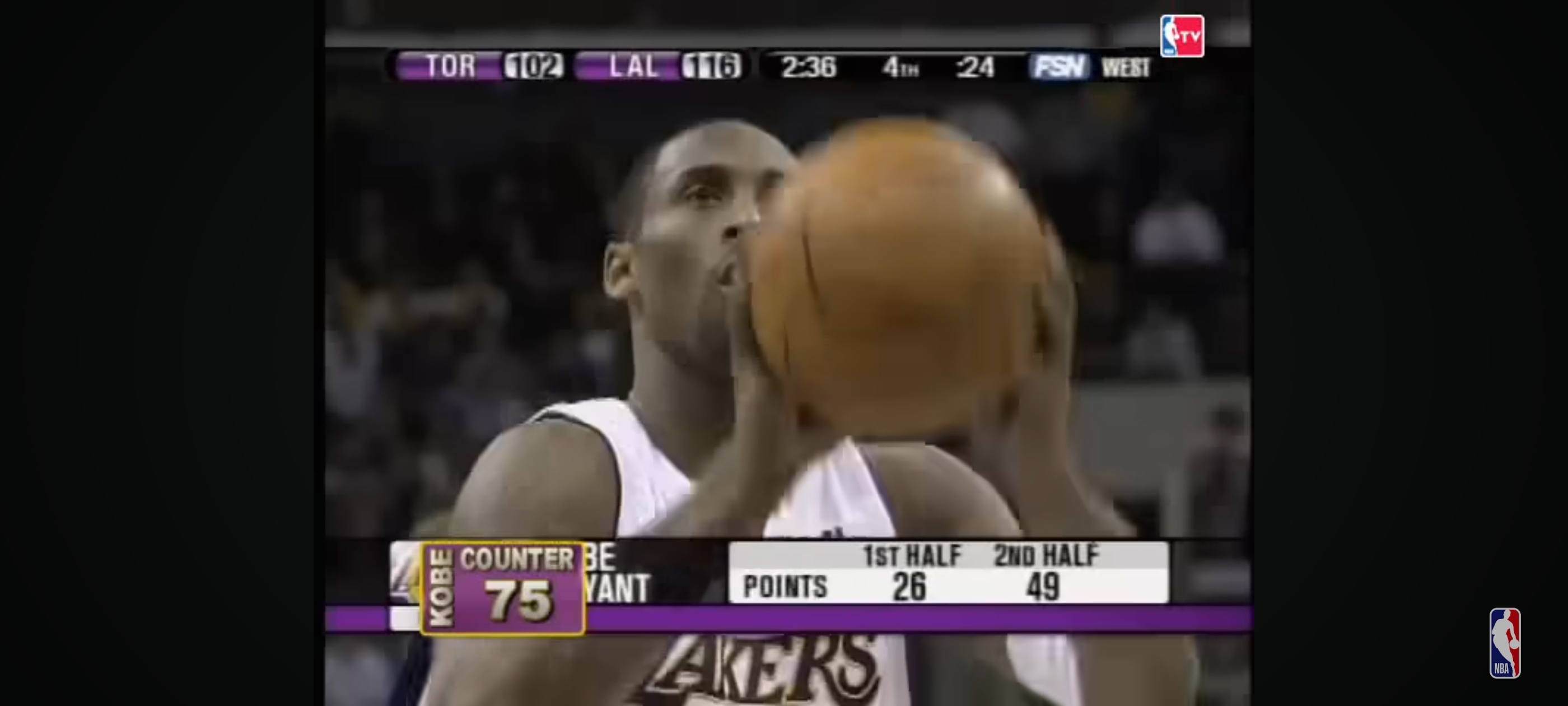 最后4分多钟湖人领先猛龙17分最后3分钟不到领先13分科比81分的最后一些分数…