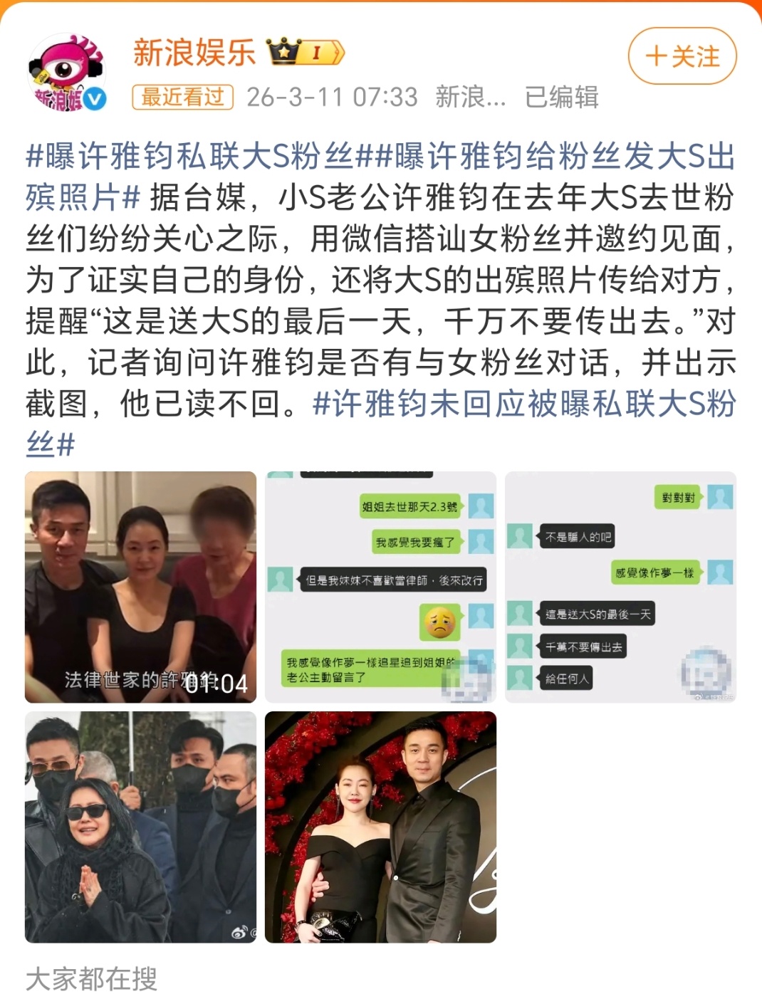 所以许雅钧是真的用大s出殡照片私联女粉丝咯?人干事啊???还好意思回应🤮