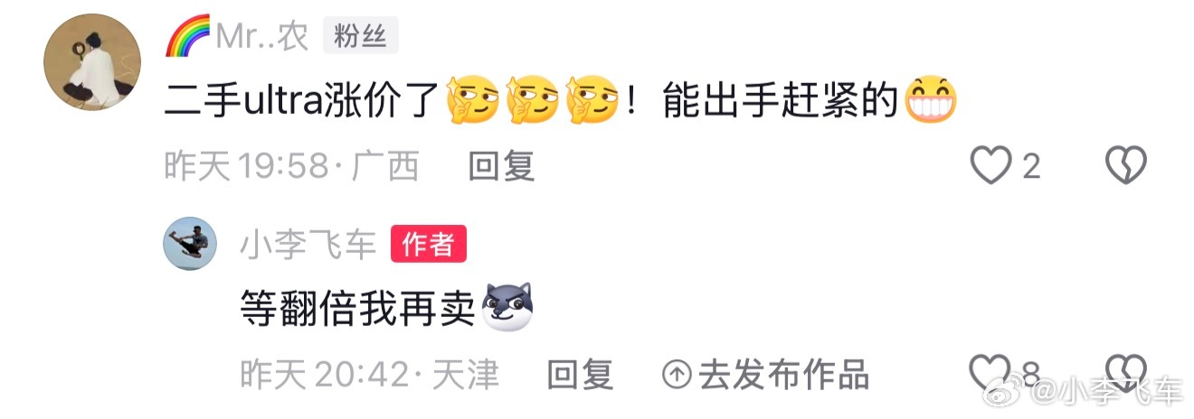 小李飞车 怎么今天都是说二手小米su7ultra涨价了的?粉丝评论涨价了赶紧出手