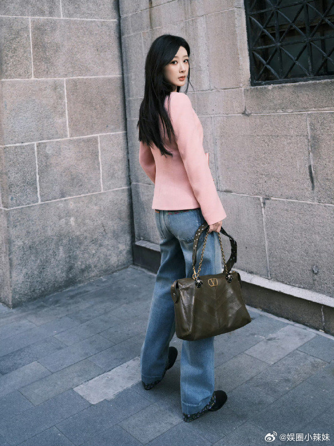 杨紫罗马时装周出图杨紫收腰粉西装好有星味啊杨紫,罗马时装周出发图🈶