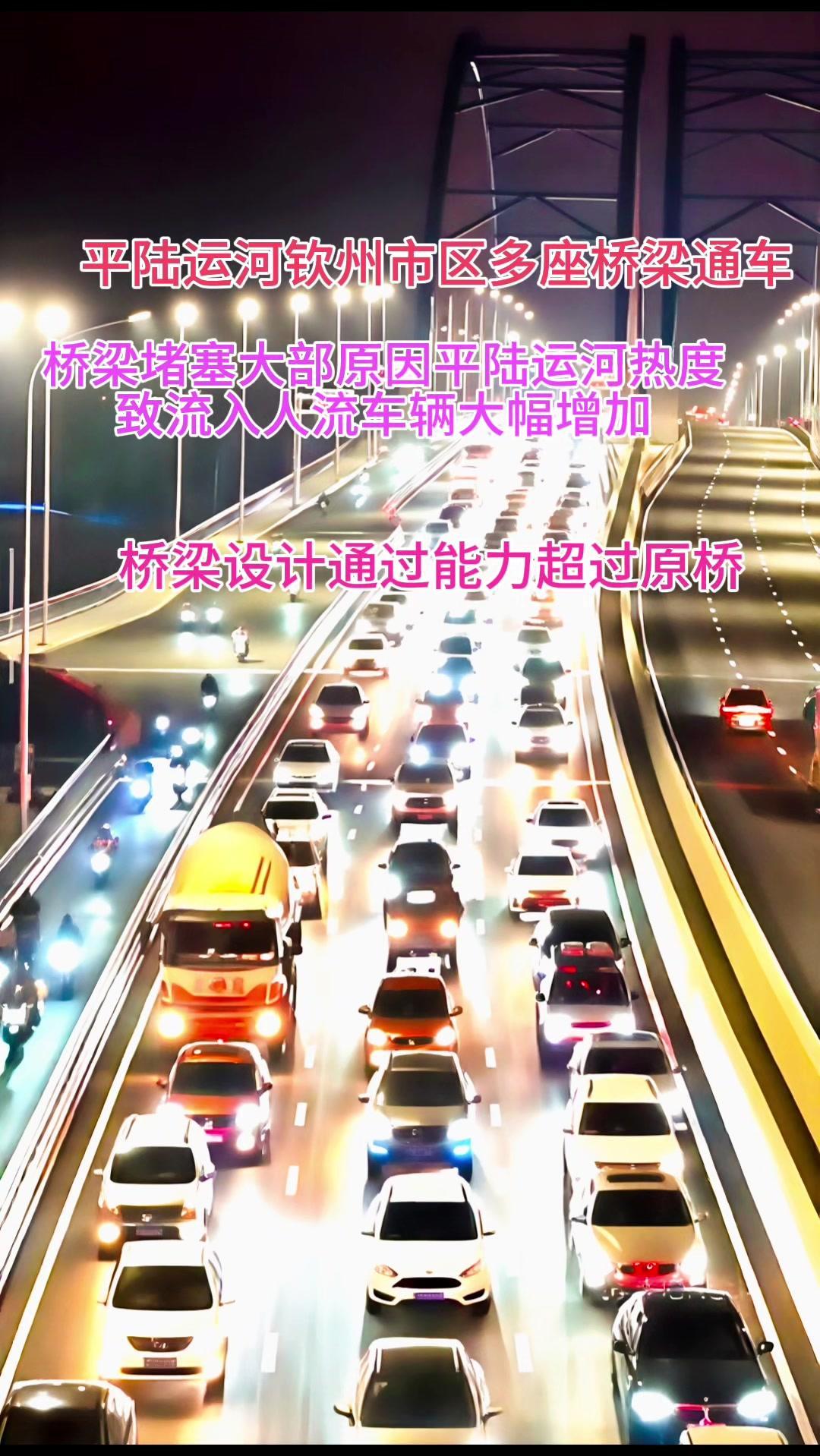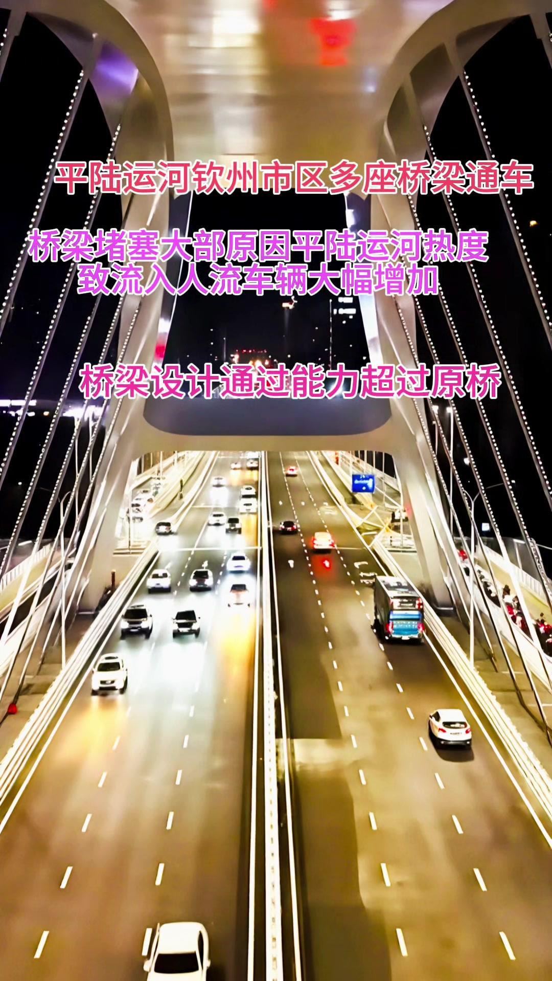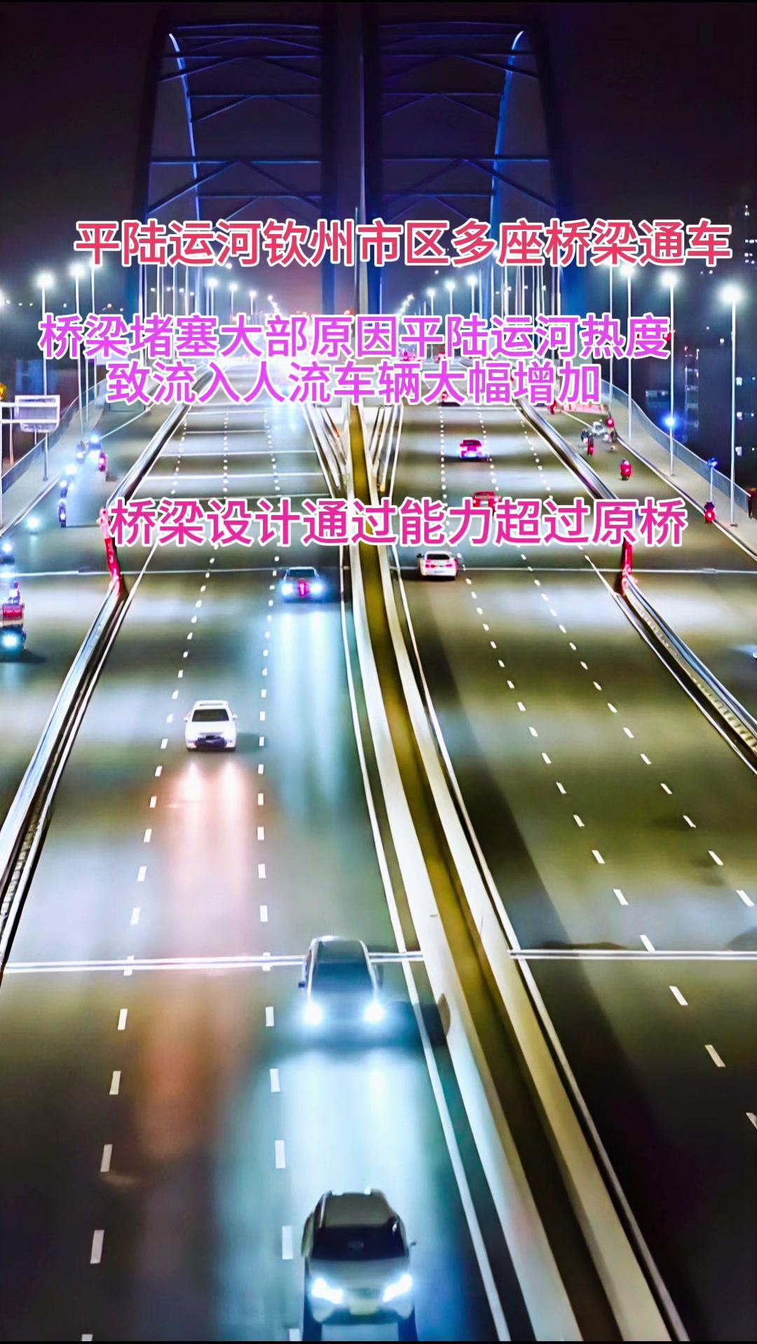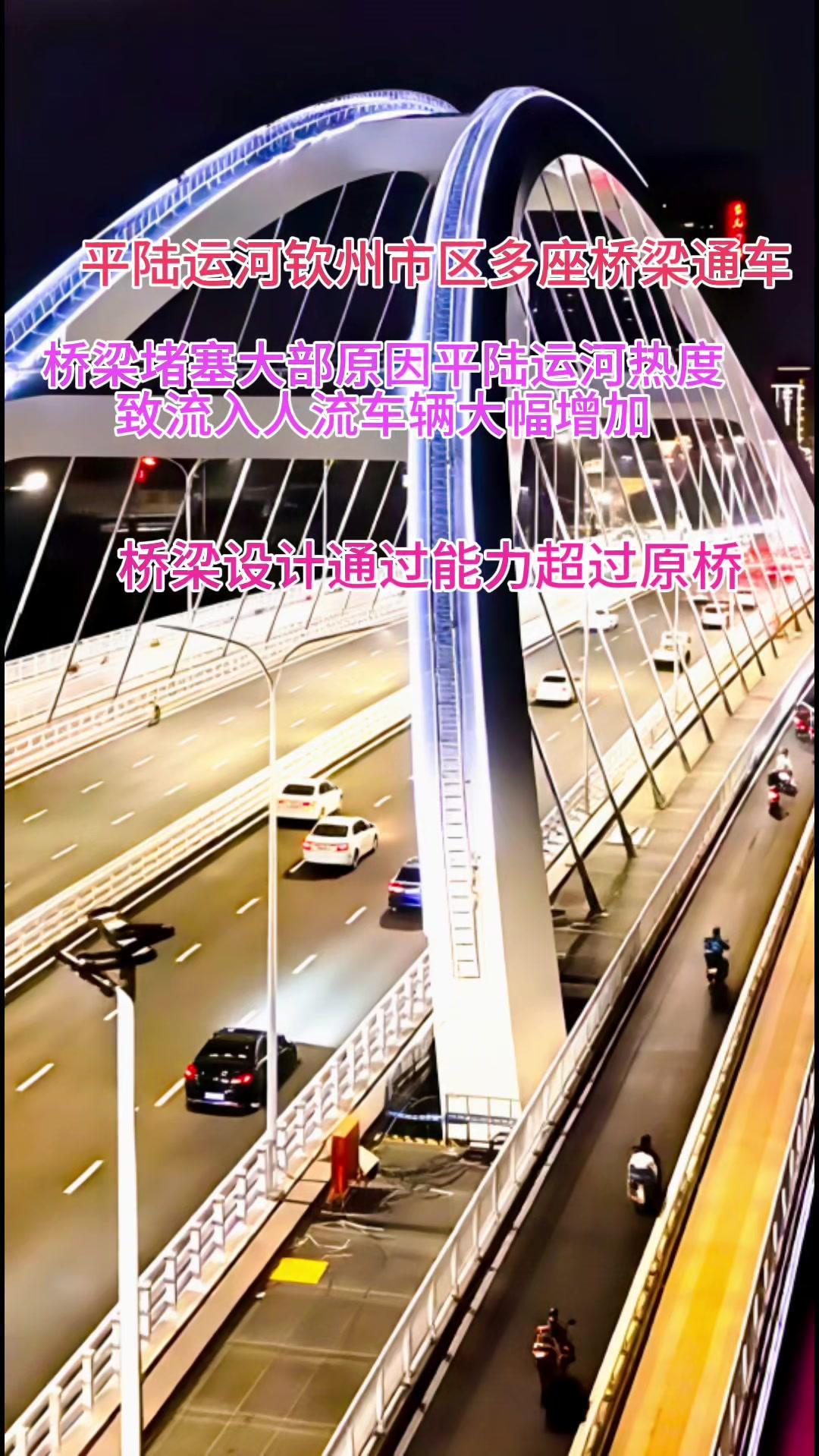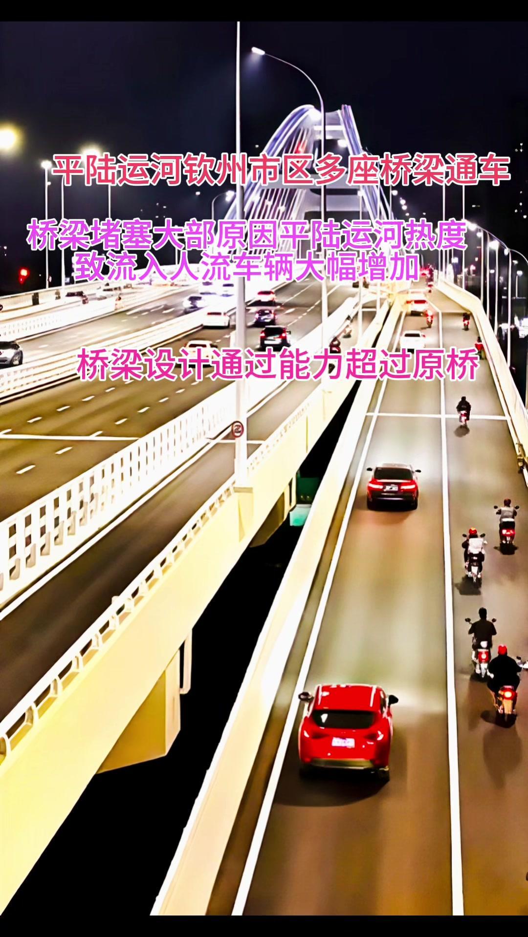 🌉平陆运河通车后,钦州部分桥梁出现拥堵,主要是因为运河带来的人流、物流、车流量大幅增加。 改建后的桥梁设计通过能力比原桥提高不少,但当前部分桥梁匝道未全面通车,加上近年钦州车流量本身增长明显,导致短期通行压力增大。