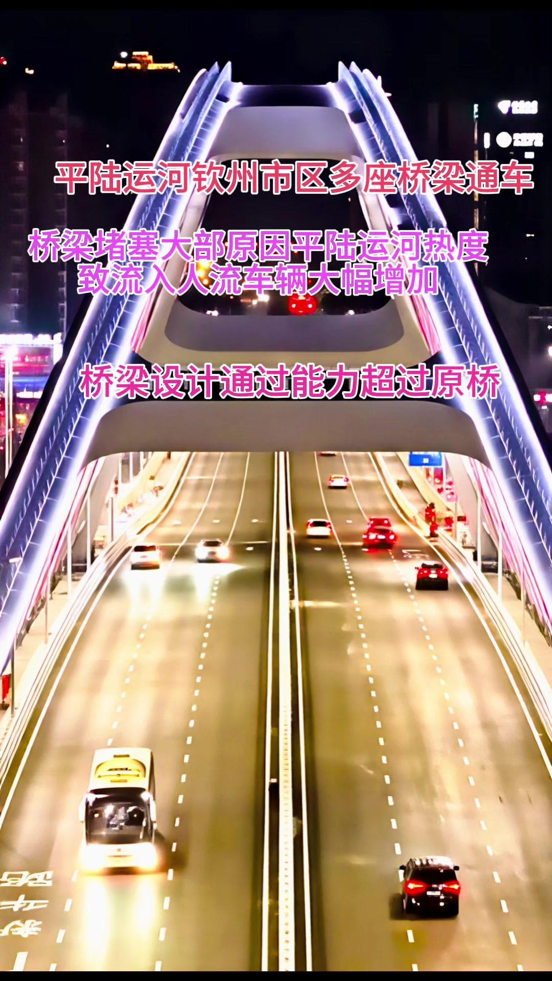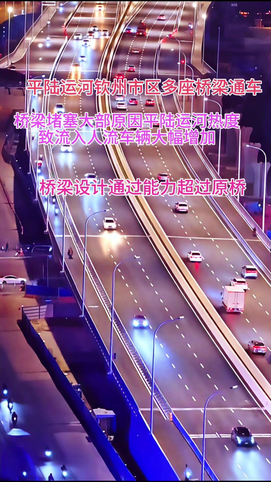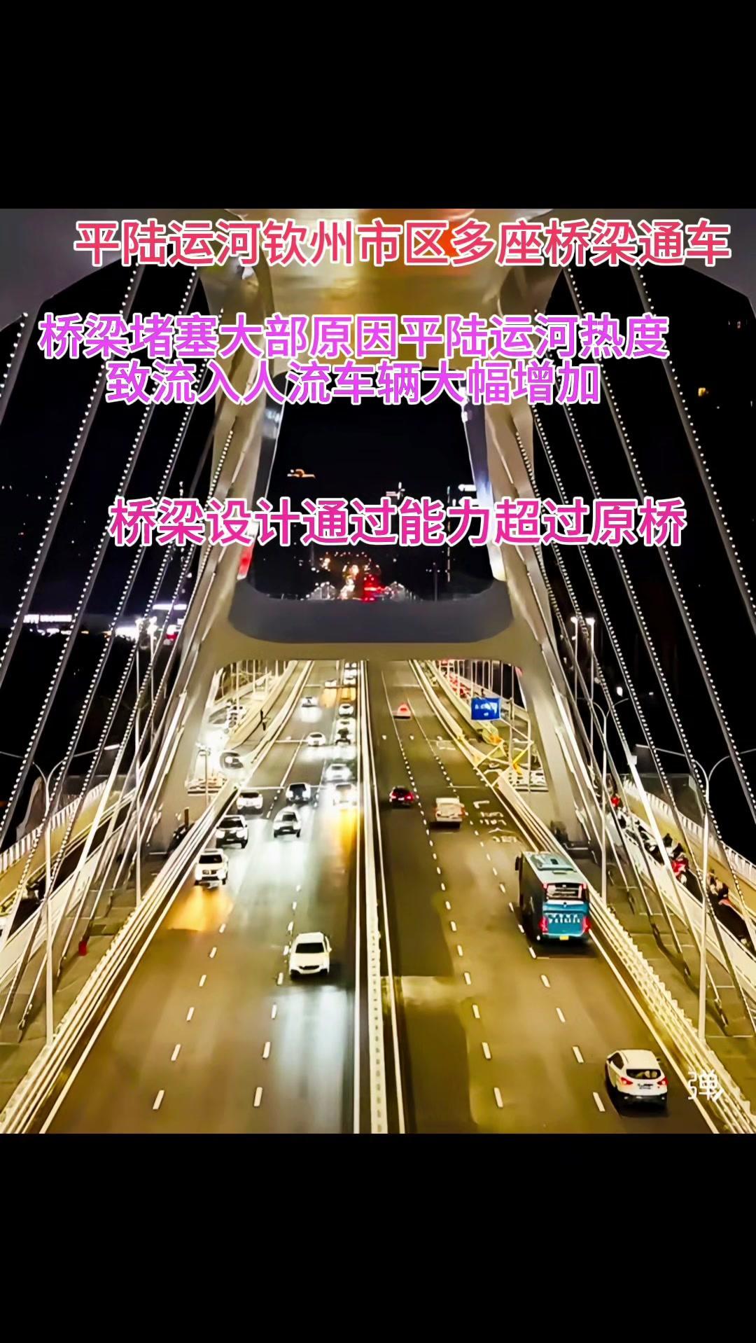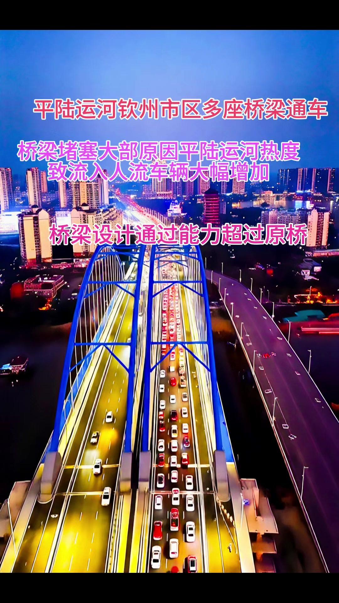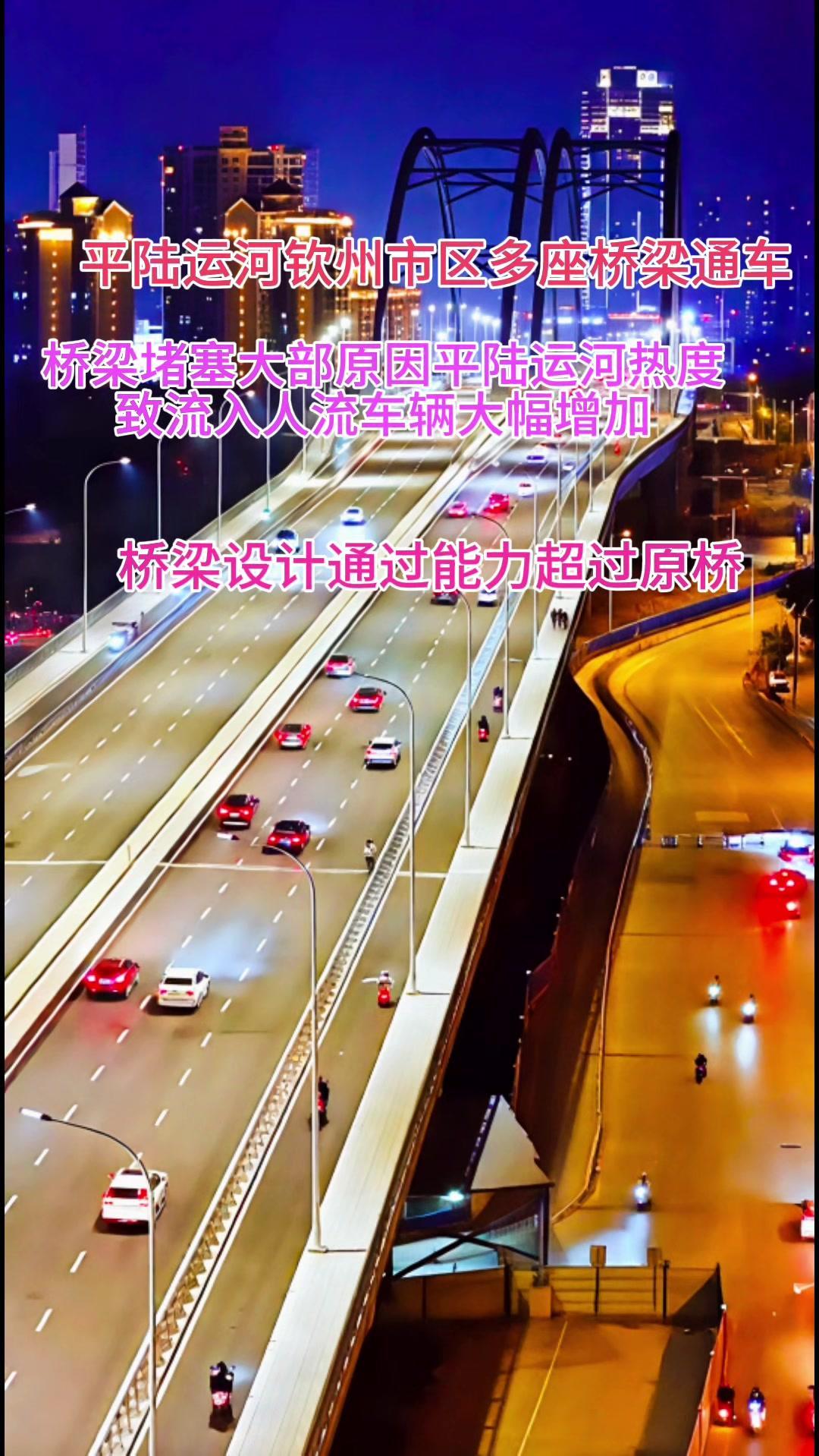 🌉平陆运河通车后,钦州部分桥梁出现拥堵,主要是因为运河带来的人流、物流、车流量大幅增加。 改建后的桥梁设计通过能力比原桥提高不少,但当前部分桥梁匝道未全面通车,加上近年钦州车流量本身增长明显,导致短期通行压力增大。