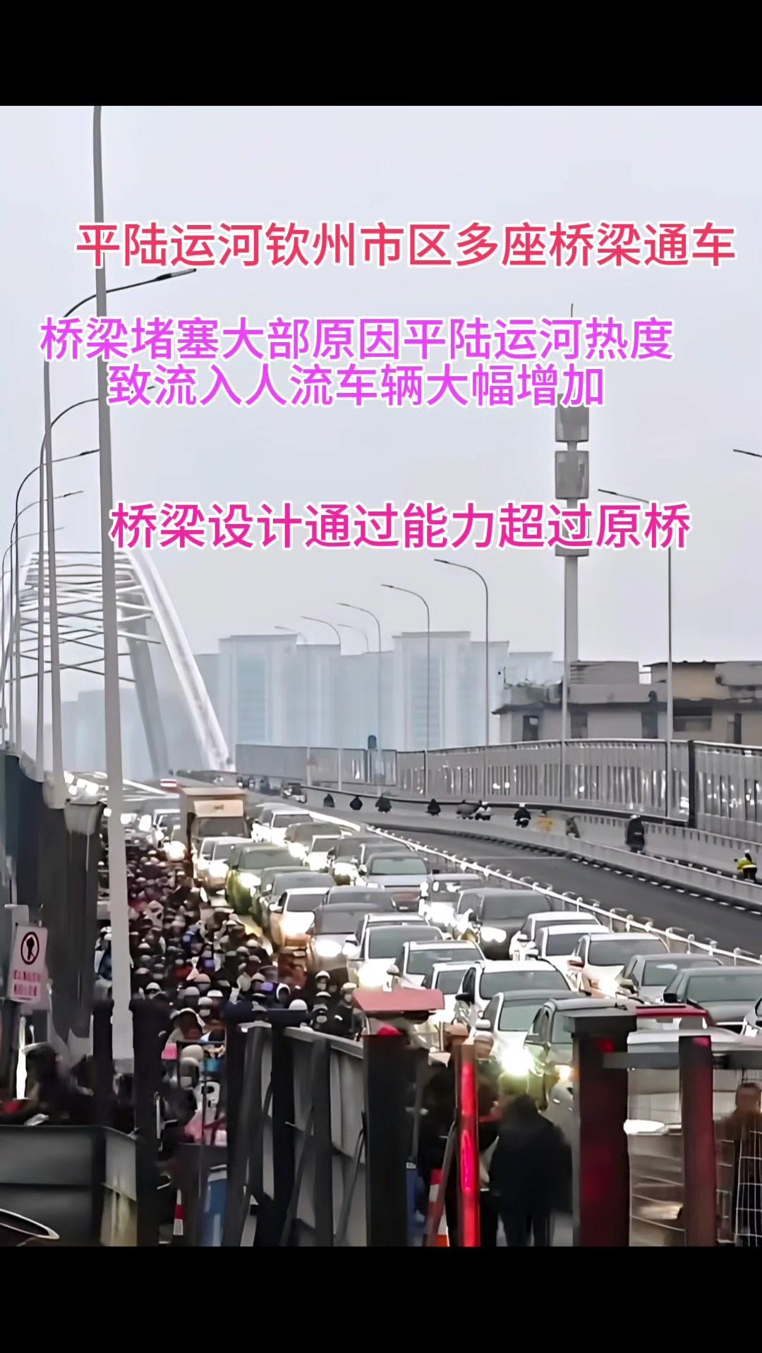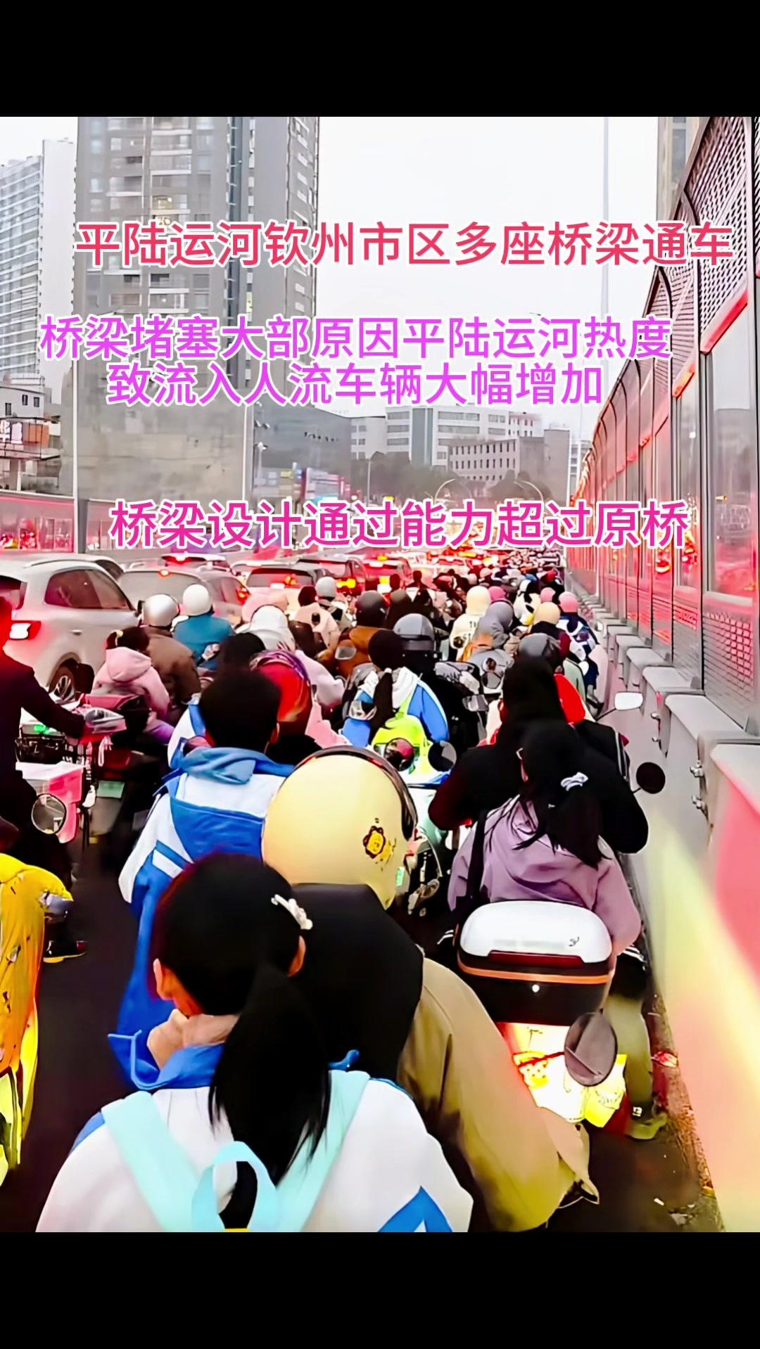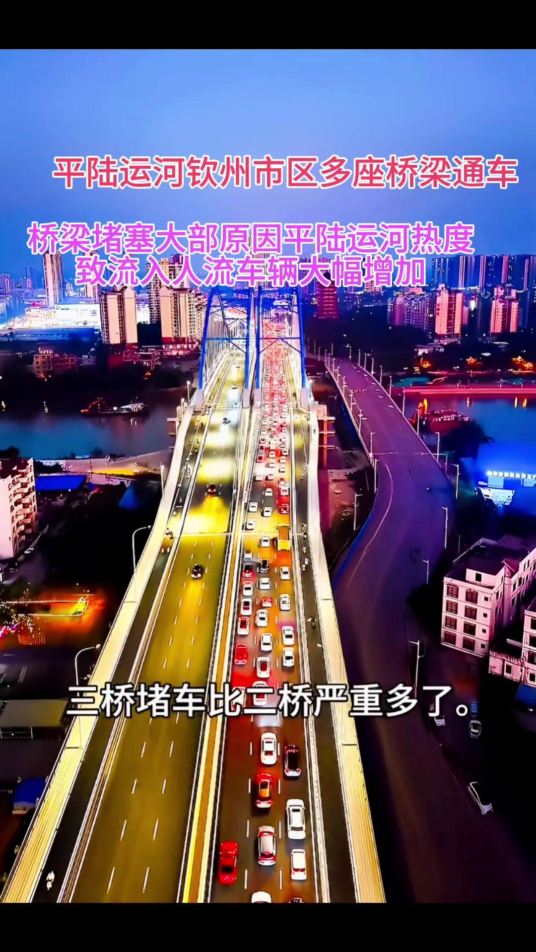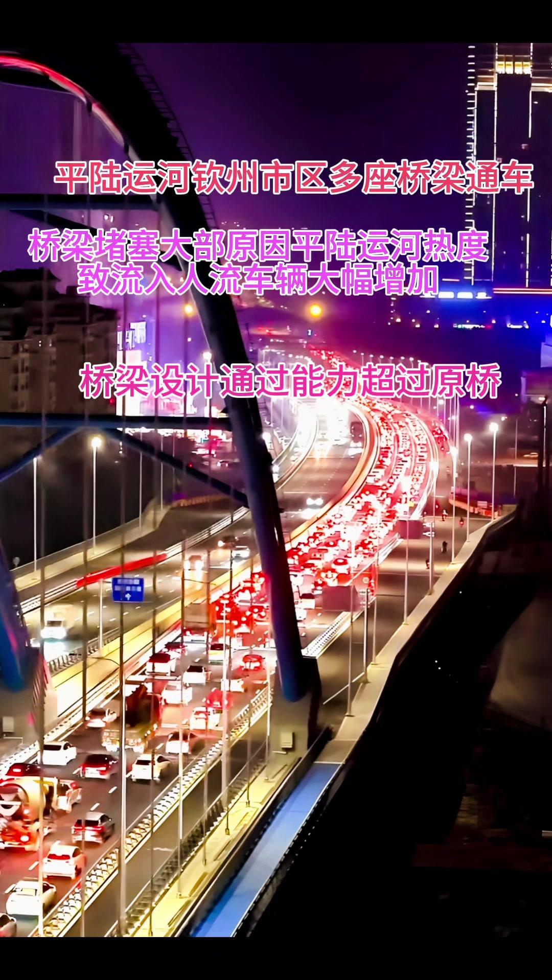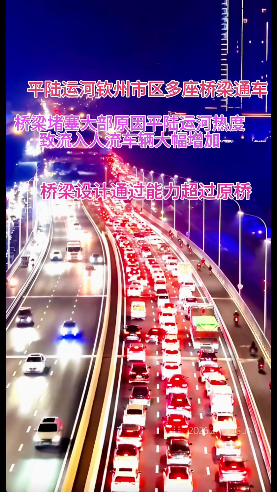 🌉平陆运河通车后,钦州部分桥梁出现拥堵,主要是因为运河带来的人流、物流、车流量大幅增加。 改建后的桥梁设计通过能力比原桥提高不少,但当前部分桥梁匝道未全面通车,加上近年钦州车流量本身增长明显,导致短期通行压力增大。