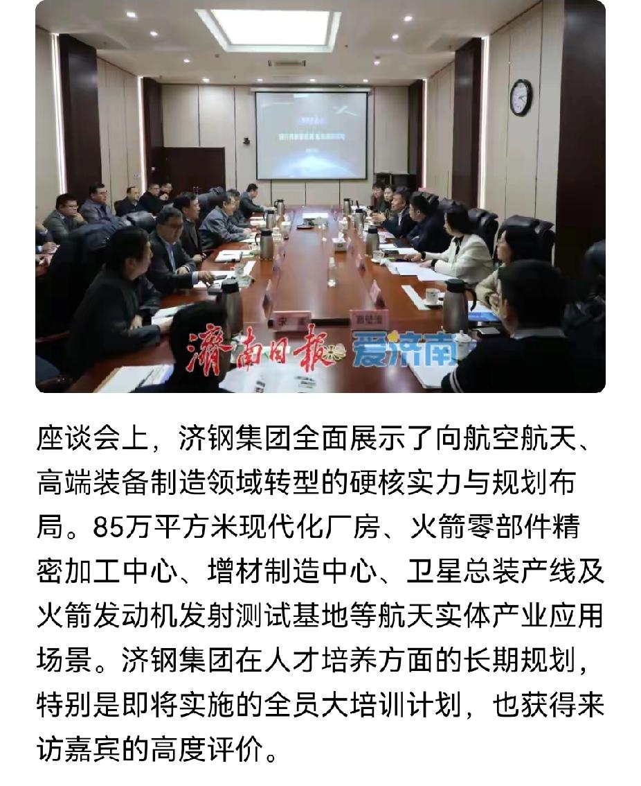 济钢以后必须人人懂卫星,其现代化厂房面积已经高达85万平方米。 最近济钢在中科航天人才集团来访问的期间公布了“全员大培训”计划,也就是说,济钢以后必须人人懂卫星。 现在济钢已经不炼钢了,一门心思的搞火箭造卫星。济钢的钢铁产能,已经被山东钢铁拿去置换,用来建设日照精品钢基地。拿走了济钢的产能指标后,山东钢铁一脚将济钢踢出来。现在济钢和山东钢铁是一点关系也没有。 没了钢铁生产指标的济钢差点饿死,以至于都让自家员工去当保安、保洁,开出租车、网约车去了。 谁也没想到济钢竟然抓住了空天信息产业,不光活过来了,竟然摇身一变成了高科技企业。 现在济钢言必称航天,不光要造卫星、搞火箭,就连旗下的运输公司也不拉钢铁改成拉火箭了。 现在济钢竟然有85万平方米的现代化厂房。85万平方米是什么概念,大约1200亩,相当于119个足球场面积,用来造太空飞船都绰绰有余了。 济钢的经历,值得学习啊。