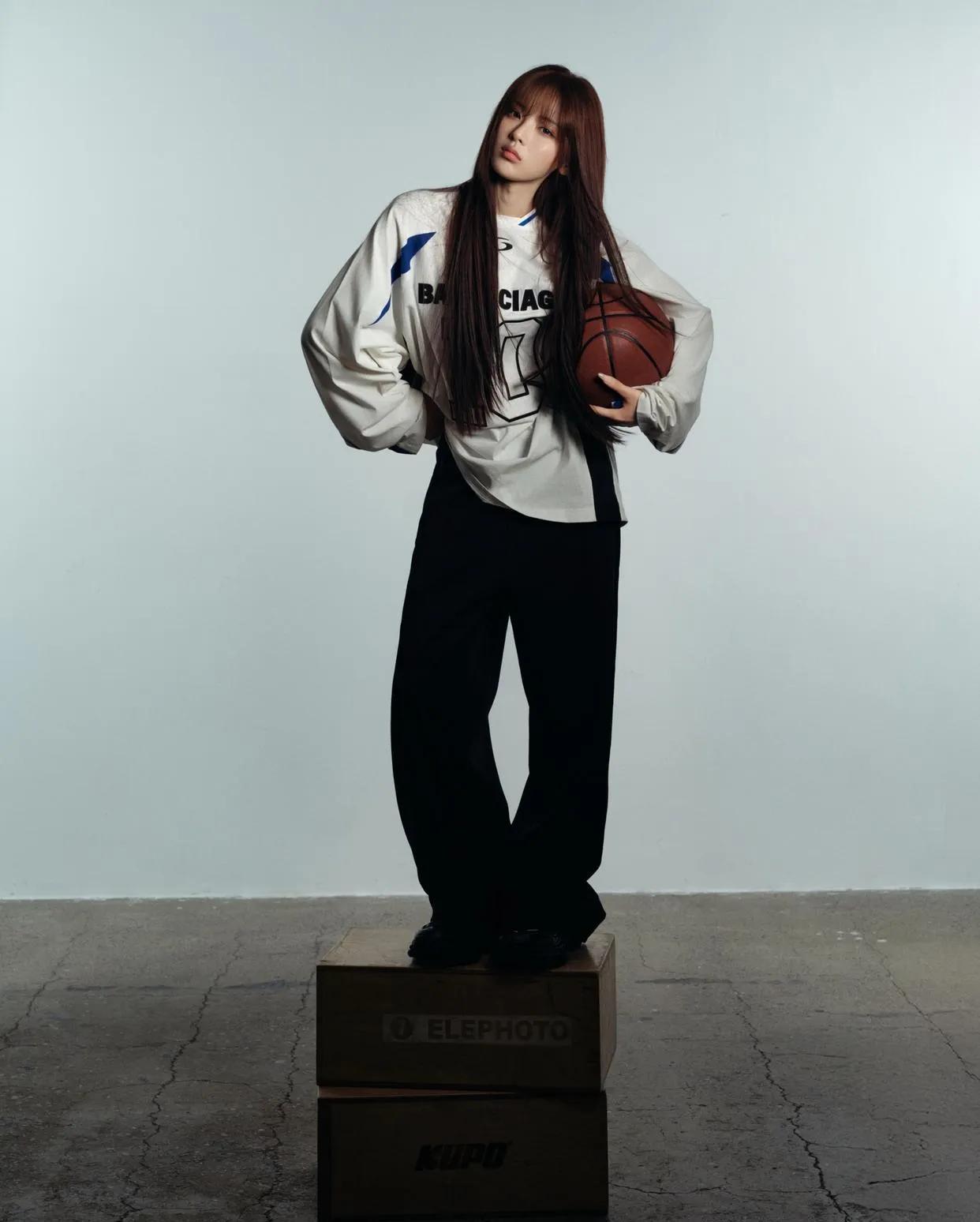 被杨超越的中性风狠狠帅到!🏀 oversize球衣+阔腿拖地裤,慵懒随性又自带气场,篮球道具一拿,秒变街头酷盖! 咖色腋下包巧妙拉高重心,小个子穿宽松款也能显高显瘦,可塑性真的太强了~ 杨超越 中性风穿搭 男友风