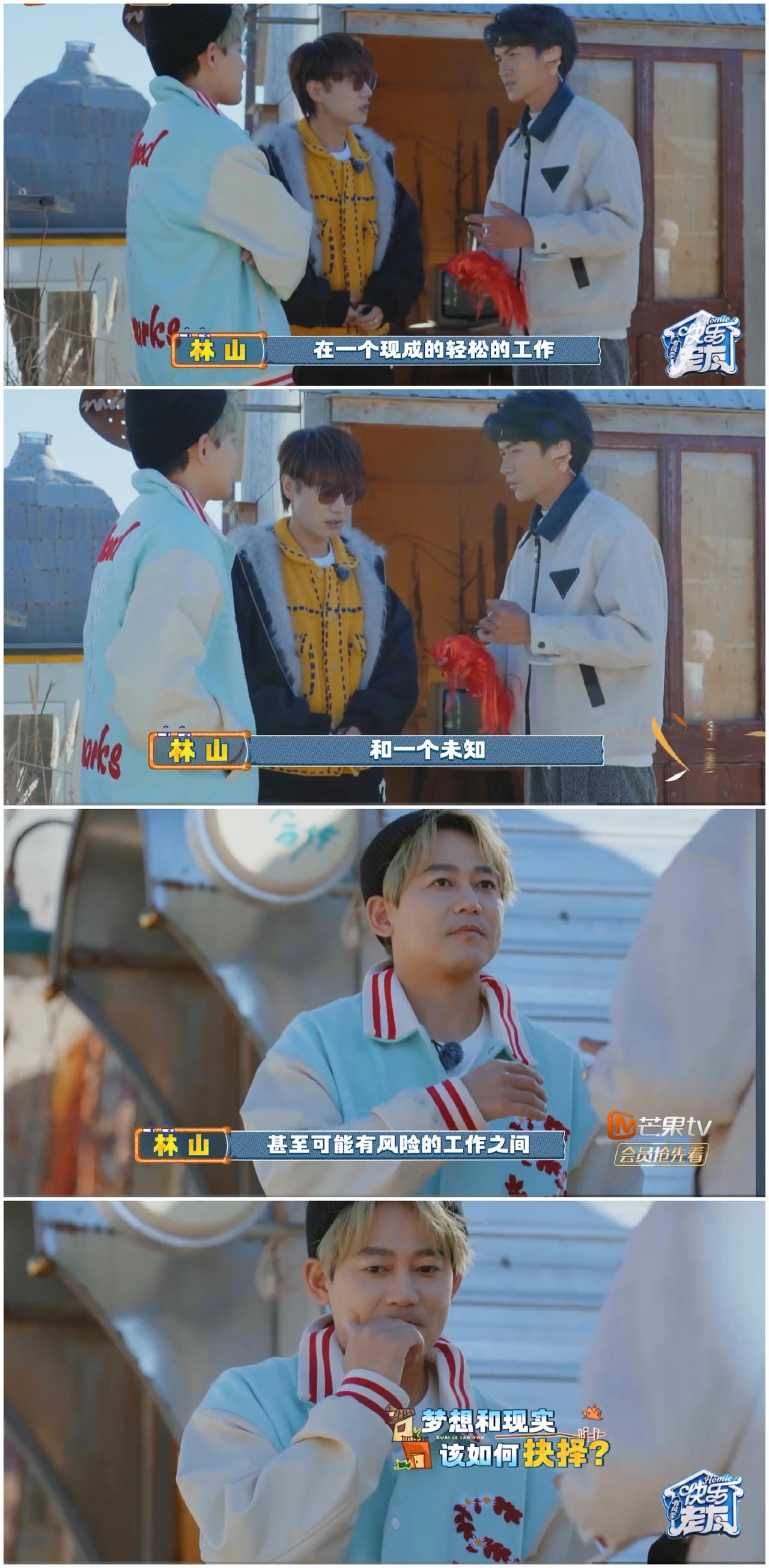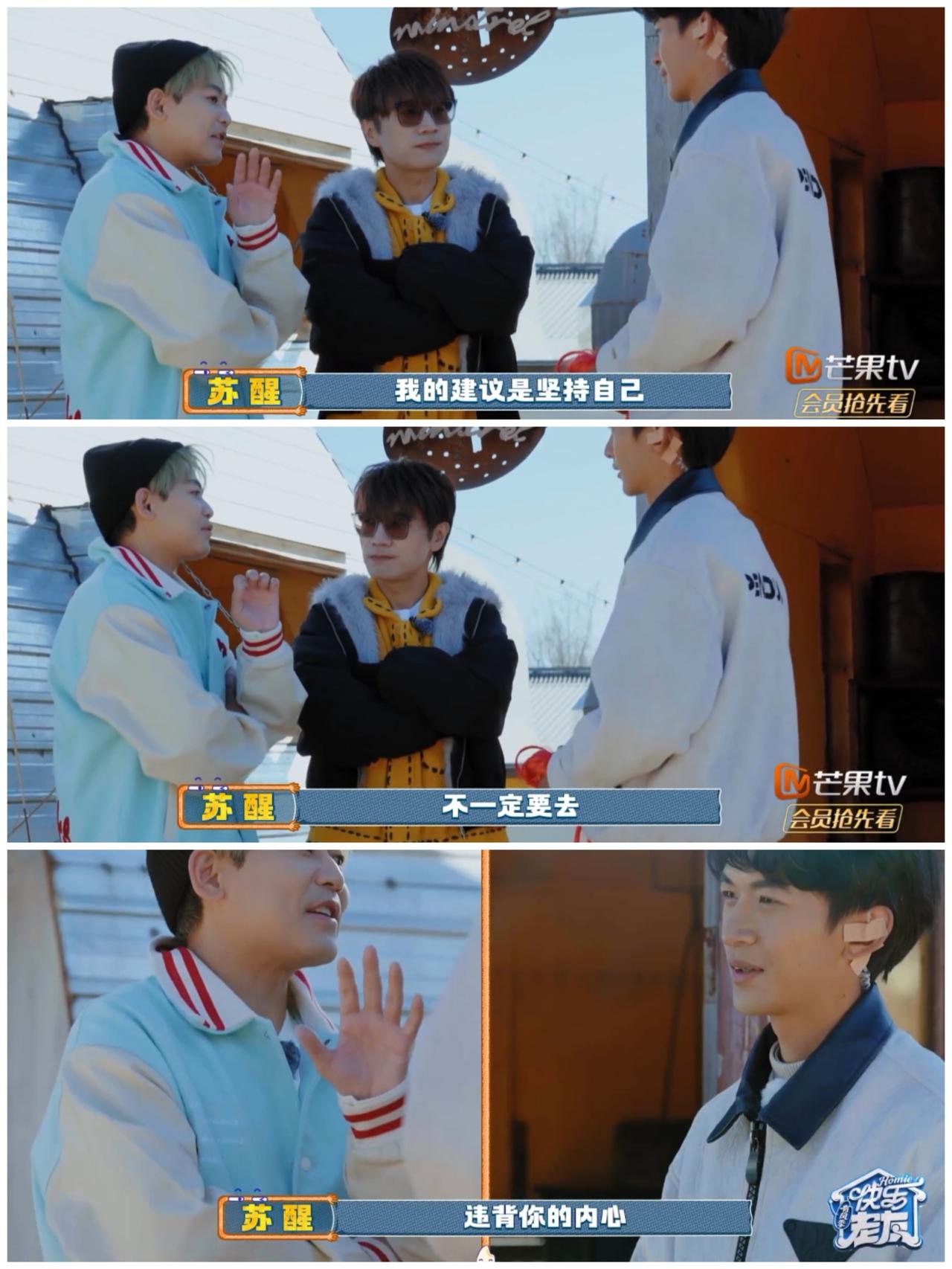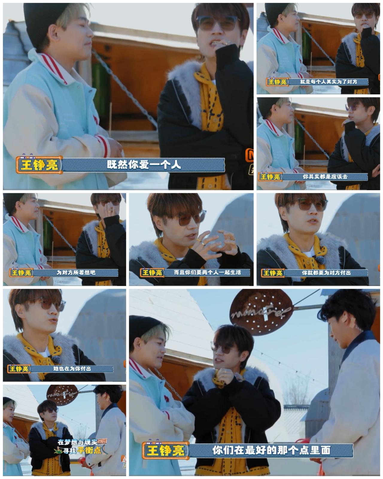 王铮亮与苏醒 在这一点上 发生了强烈分歧。 王铮亮,苏醒在丽江玩剧本杀, 面对现成的轻松工作机会 与未知风险工作 之间做出选择。 王铮亮基于这个是问题 关系到婚姻方面, 他没有明确给出答案, 只是模糊焦点, 想要在妻子提供的轻松工作 和自己追求的未知梦想工作 之间找到可以平衡的点。 强调双方都要为对方考虑与付出。 哎呀, 王铮亮在现实中就遇到过这样的问题吧 他的老婆是富家女, 当时他的老婆就放弃了国外工作的机会, 不顾父母反对 嫁给了他。 跟这个剧本杀的内容有很多相似之处。 而苏醒这个富家公子似乎没有这方面的烦恼, 他强调自己会坚定追求自己的梦想。 不管他人如何反对。 是呀, 他们不同的生活背景影响着他们的人生选择, 没有对错, 只要发自内心无怨无悔。