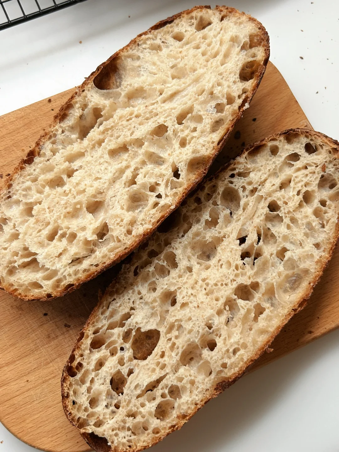 ❤️留个记录吧,俄罗斯面粉,掺二成全麦,15% 纯鲁邦种发酵,手工拉伸揉面,入炉后,却被忘在了脑后🥴 ❤️一点心得:俄罗斯面粉,怎么用,都还是中式饺子粉的口感和味道,加点儿全麦和,鲁邦长时间隔夜发酵,会弥补一些香味儿,但是,还远不如法国粉和北美粉,只适合练手瞎玩儿。