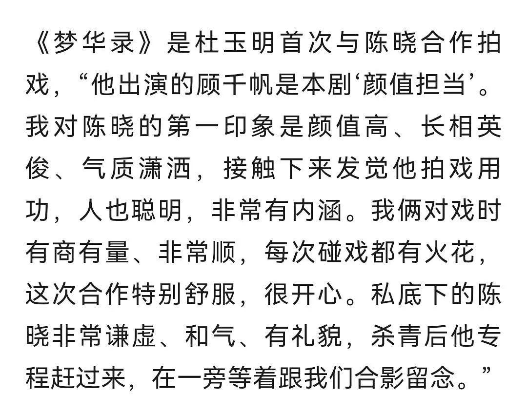 最近老是看到白玉兰预测 名单里有陈晓,讲实话陈晓确实还挺值得期待的。近年作品从品质到口碑都在线,演技也完全有说服力一部大生意人,把从落魄书生到铁血儒商的古平原演得入木三分,一举刷新央八古装剧天花板,开播仅27分钟酷云实时破三之前合作过的业内人士,谈起陈晓来也是都是清一色的夸赞与好评:“颜值担当”“塑造能力强”“把自己的声音变成塑造角色的重要媒介”“任何时刻不离现场,一旦要拍,立刻到位” 颜值能打,专业能力到位,相处舒服,谦逊和气有礼,这样的演员现在确实不多见啊。荧幕内外的宝藏,确实得登上新的高峰