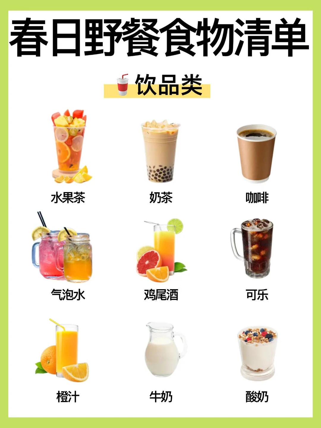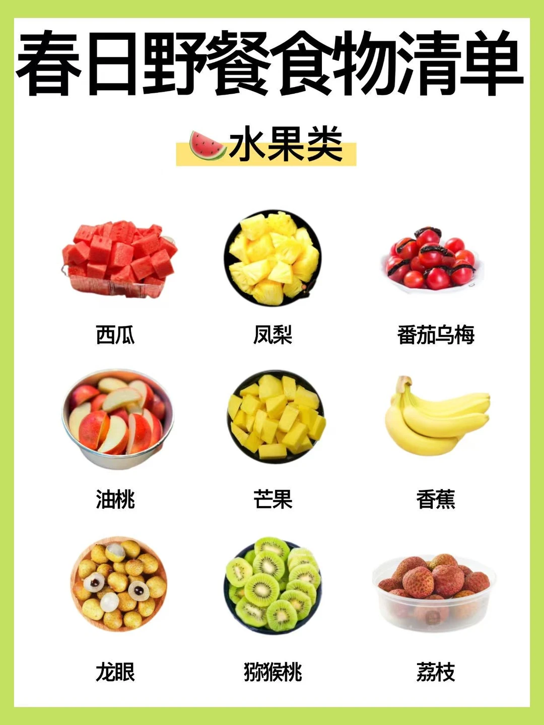 🍃春风一吹就想往草坪跑!今天给你们整理了一期春日野餐食物清单🧺超详细版㊙️全部都好吃✅高颜值✅假期必备‼️懒人们收好这份野餐食物万能公式[暗中观察R]需要的快收藏~ ✅详细的野餐食物清单都在图上👆 附🧾: 🍱餐食类 🍉水果类 🍪零食类 🥤饮品类 💕野餐小tips: ✅带牛皮纸餐盒或者木托盘!拍照巨好看! ✅提前用保鲜盒分装更卫生 ✅冰袋+保温袋锁住新鲜度 喜欢💕请多多点赞,感谢支持~