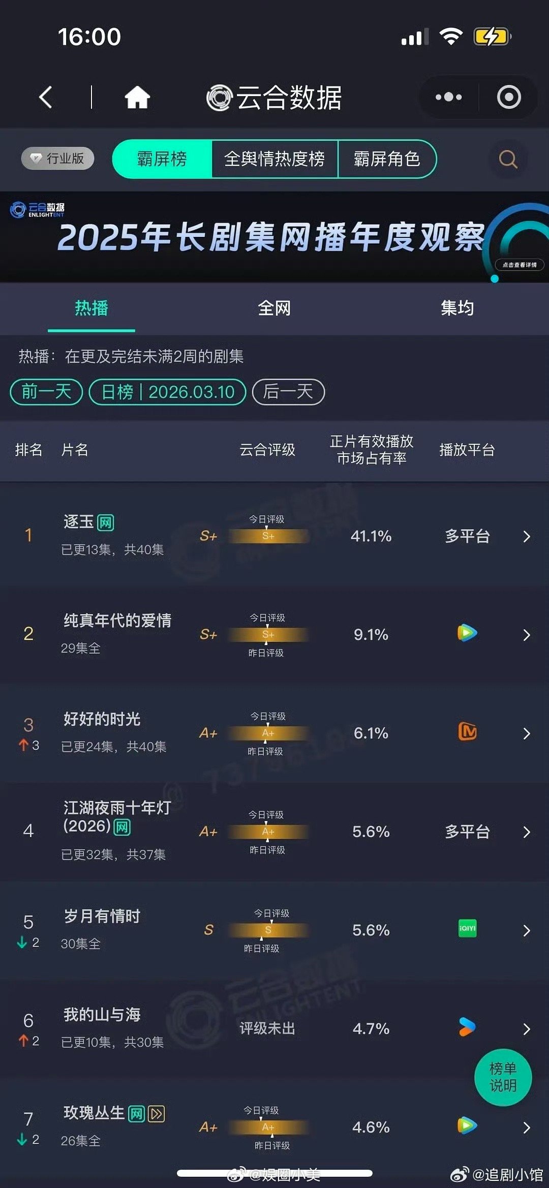 七部云合破40%的剧是滴!!!我们《逐玉》破40%了!成为第七部云合破40%的剧
