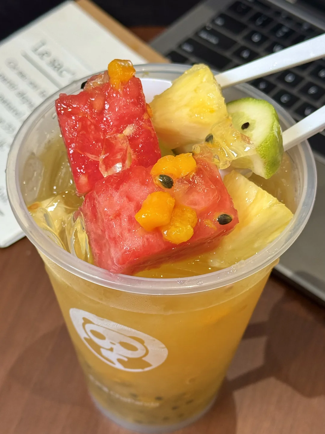 这次的超级杯水果茶,还升级成了西瓜版,加倍清爽!!!清甜的西瓜搭配凤梨芒果一口提前入夏,百香果和柠檬的加入酸甜果味更浓郁了,一整杯VC爆棚无敌满足!!!我记得去年每次健身完热到没有食欲我基本都想点它[喝奶茶R]