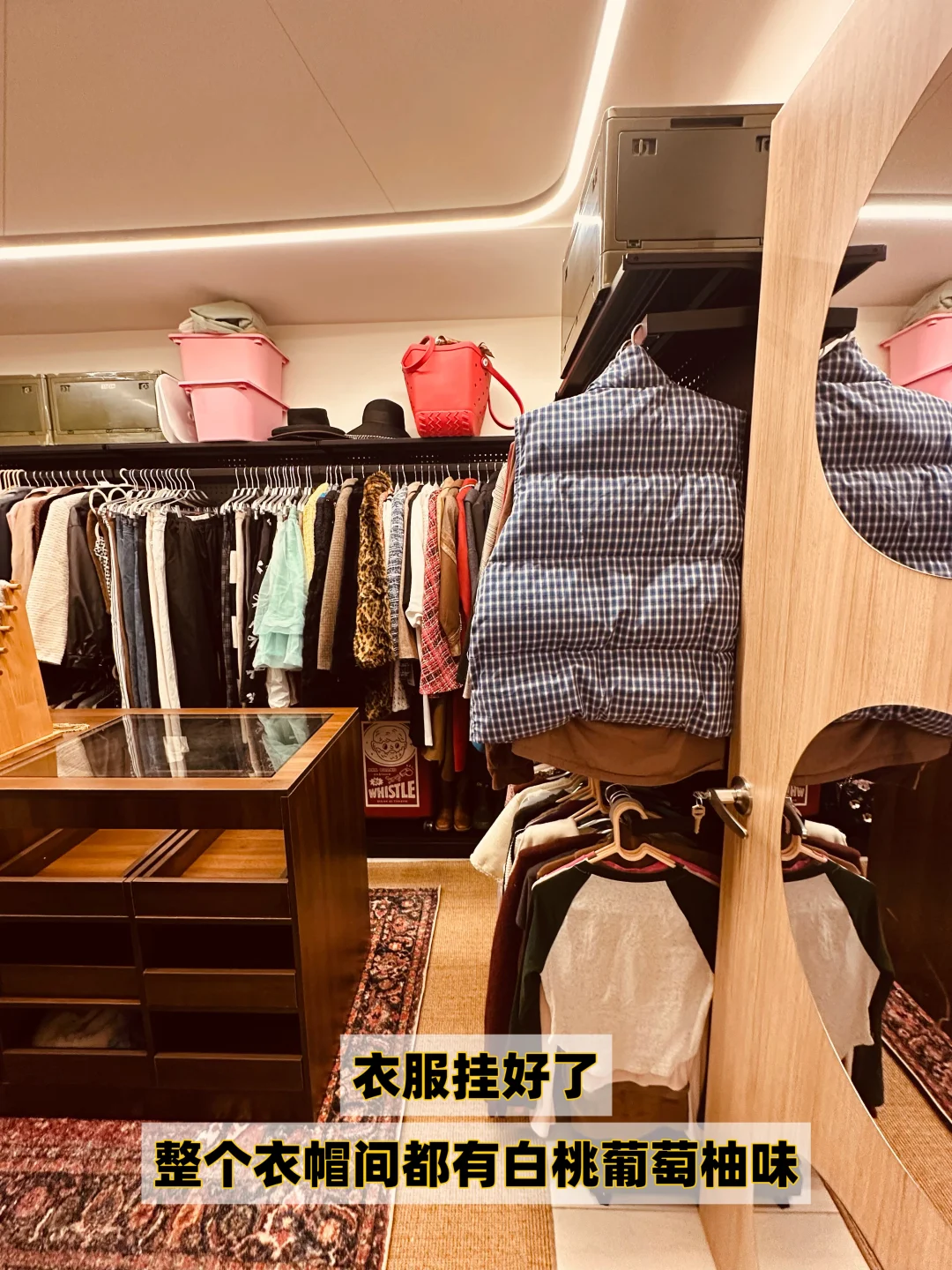 甚至整个衣帽间都白桃葡萄柚的清香
