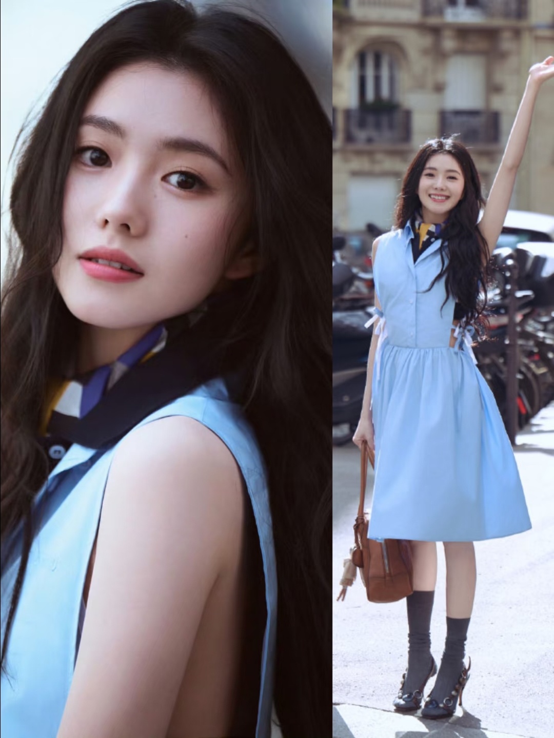 同是LV代言人,这次巴黎大秀的造型口碑差了十万八千里。刘亦菲穿粉白条纹印花