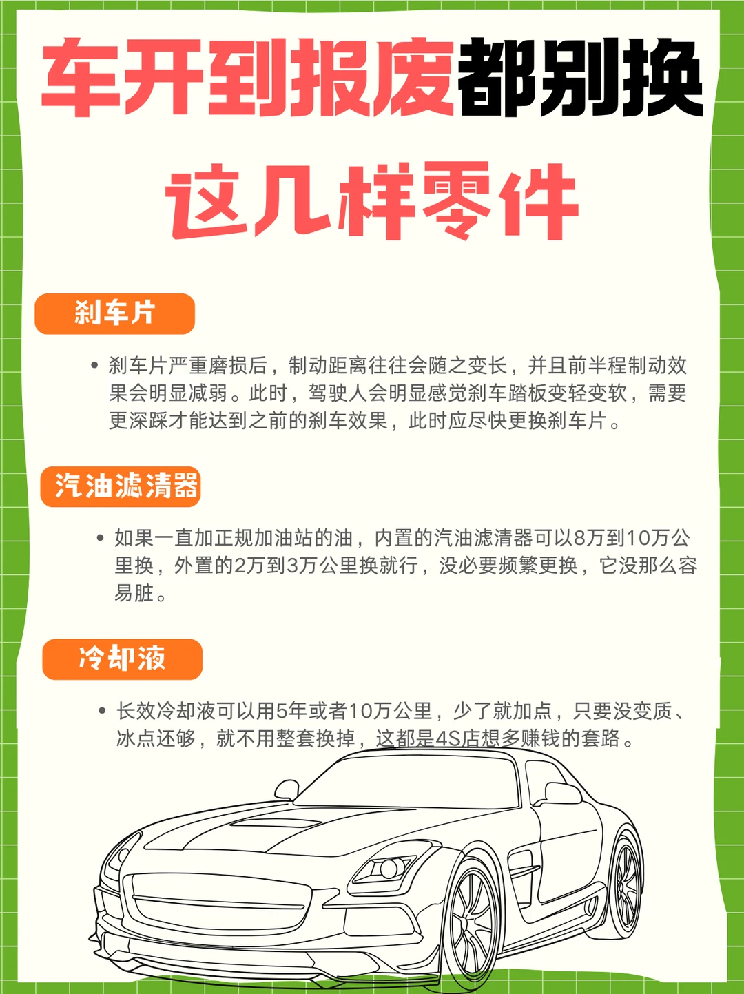长效冷却液可以用5年或者10万公里,少了就加点,只要没变质、冰点还够,就不用整套换掉,这都是4S店想多赚钱的套路。