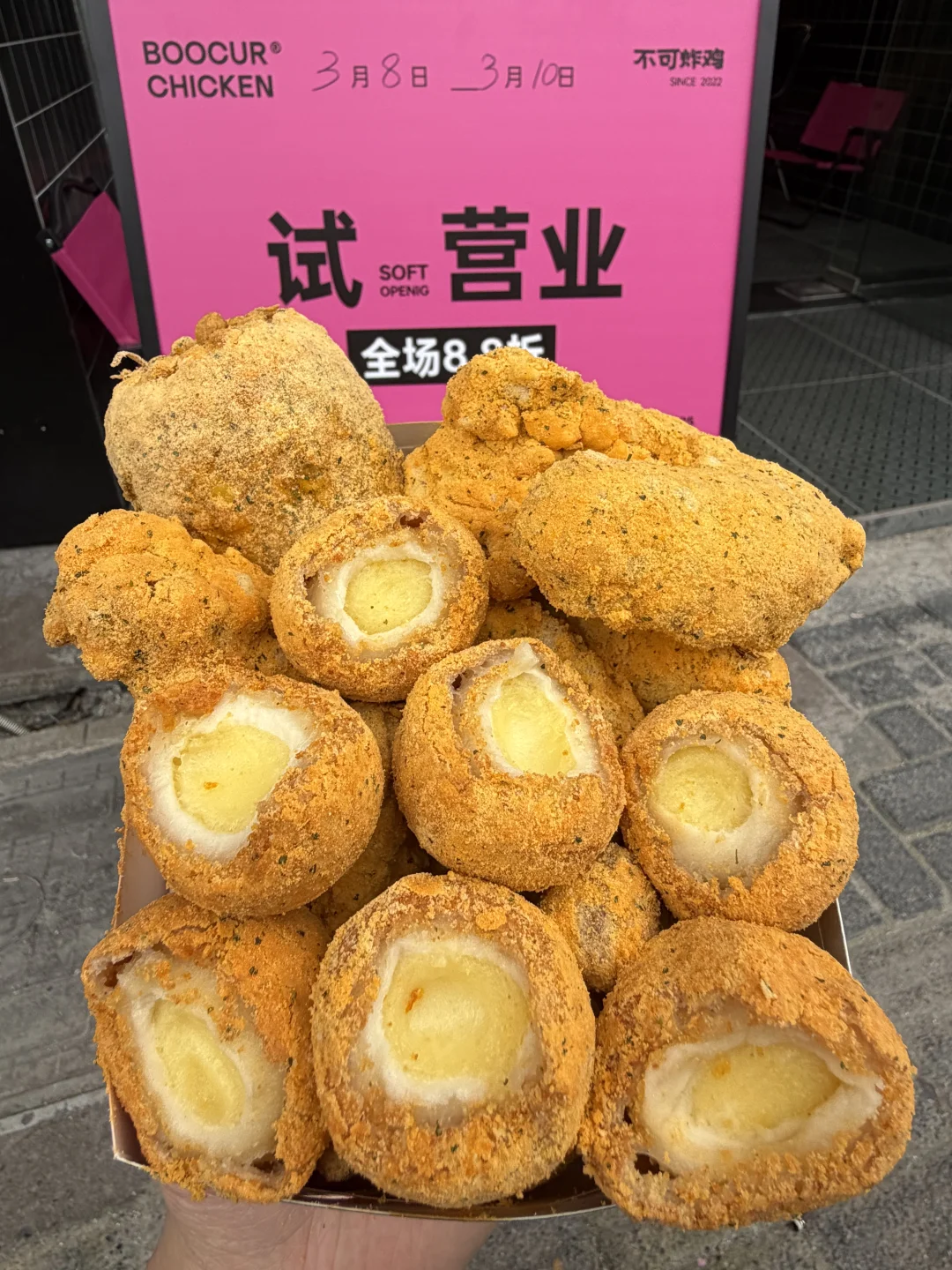 杭州临安区终于也有了 芝士粉炸鸡真的好好吃!!!还有芝士球和芝士玉米也好好吃!!!
