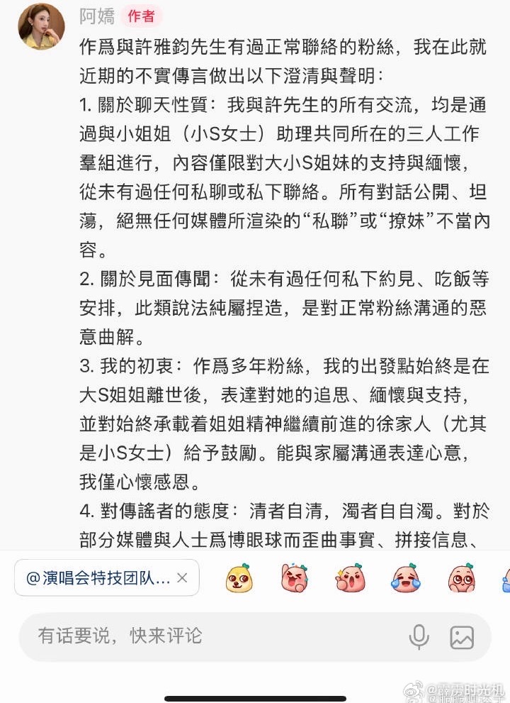 与许雅钧联络的大s粉丝发文:与许先生的所有沟通都在工作群里(群内人员有小s助理、许雅钧和她)。