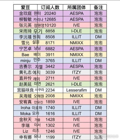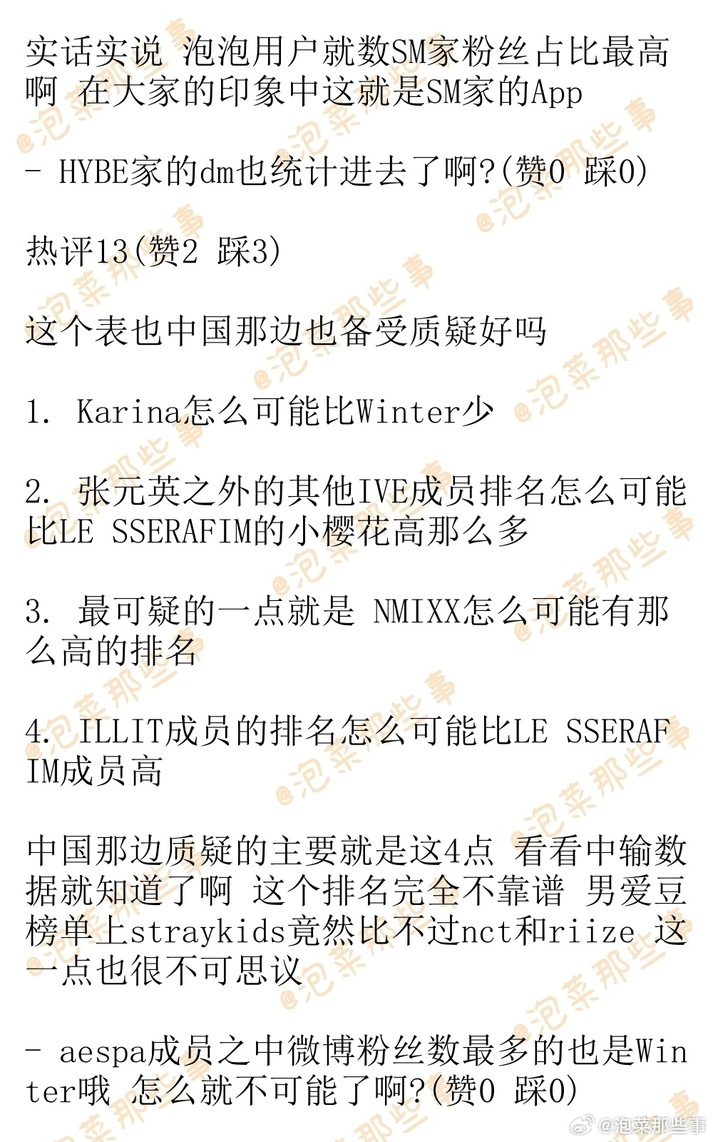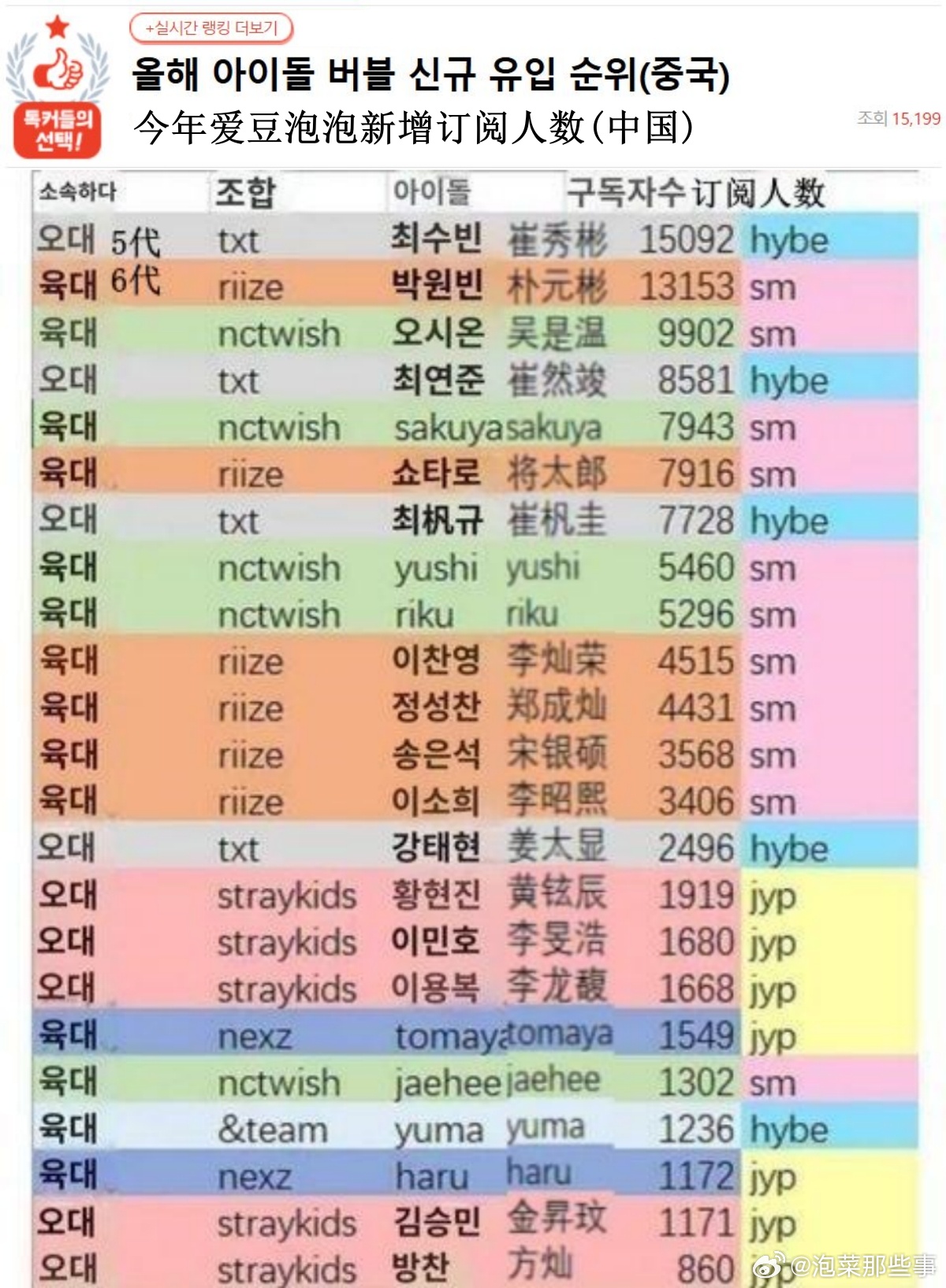 🔥韩网热帖评论翻译🔥今年爱豆新增泡泡订阅人数(中国Q音)韩网原帖帖主称:这是