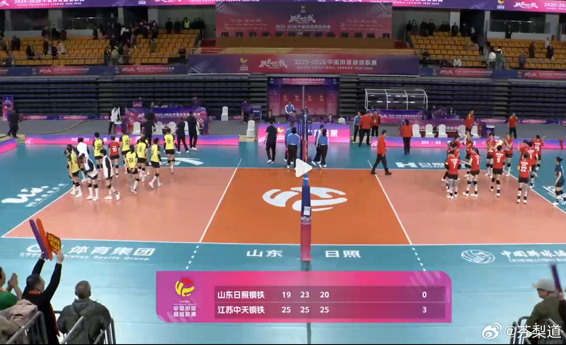 排超联赛江苏中天钢铁女排女排A级季后赛第19轮比赛,山东日照钢铁主场0-3(19-25/23-25/20-25)江苏中天钢铁