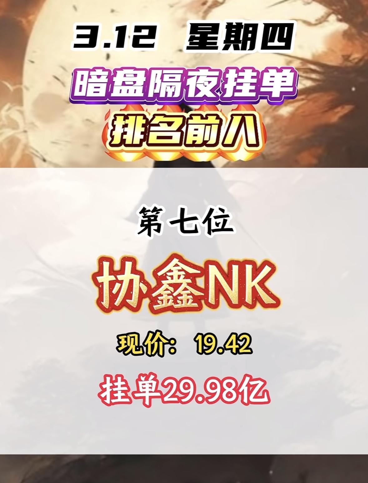 3月12日暗盘隔夜挂单揭晓 顺纳股份这情况有点意思。昨天它还是第五名,现价17