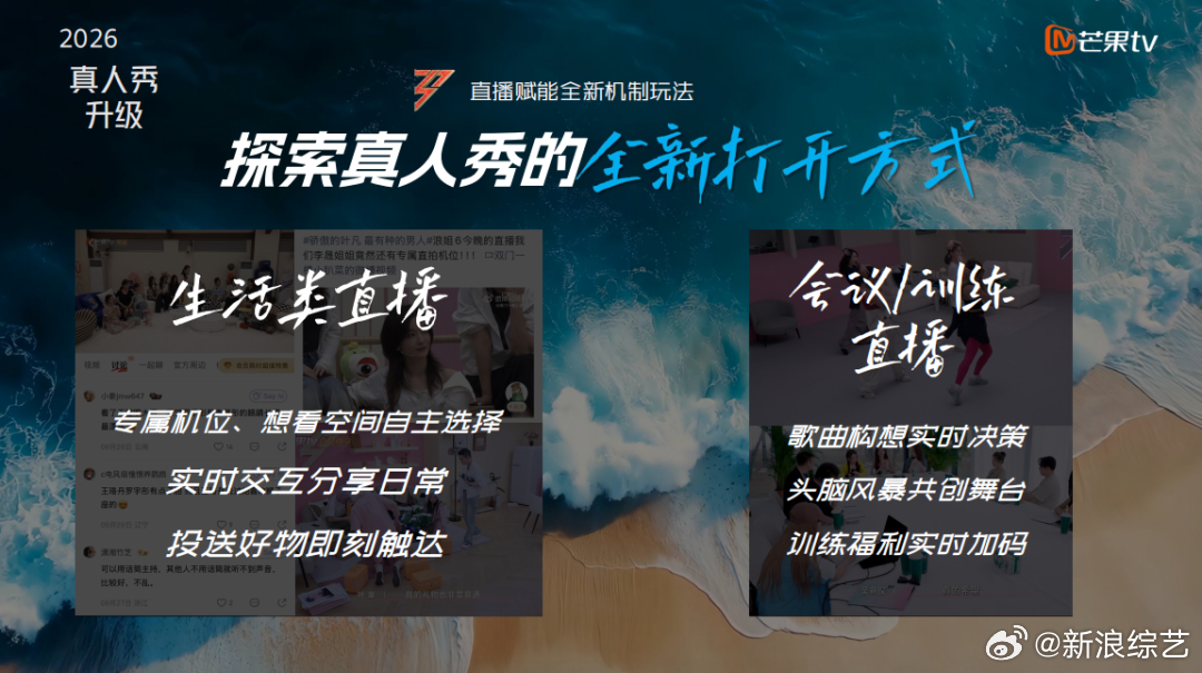 乘风2026将全程直播 广告发文乘风2026 将采用全舞台直播的形式,从初舞台到总决赛全程直播,打造初舞台、五次公演、总决赛共7场直播大事件!同时,剧透有“经典青春搭档”、“新圈层偶像”加入节目。你期待在《乘风2026》看到谁?