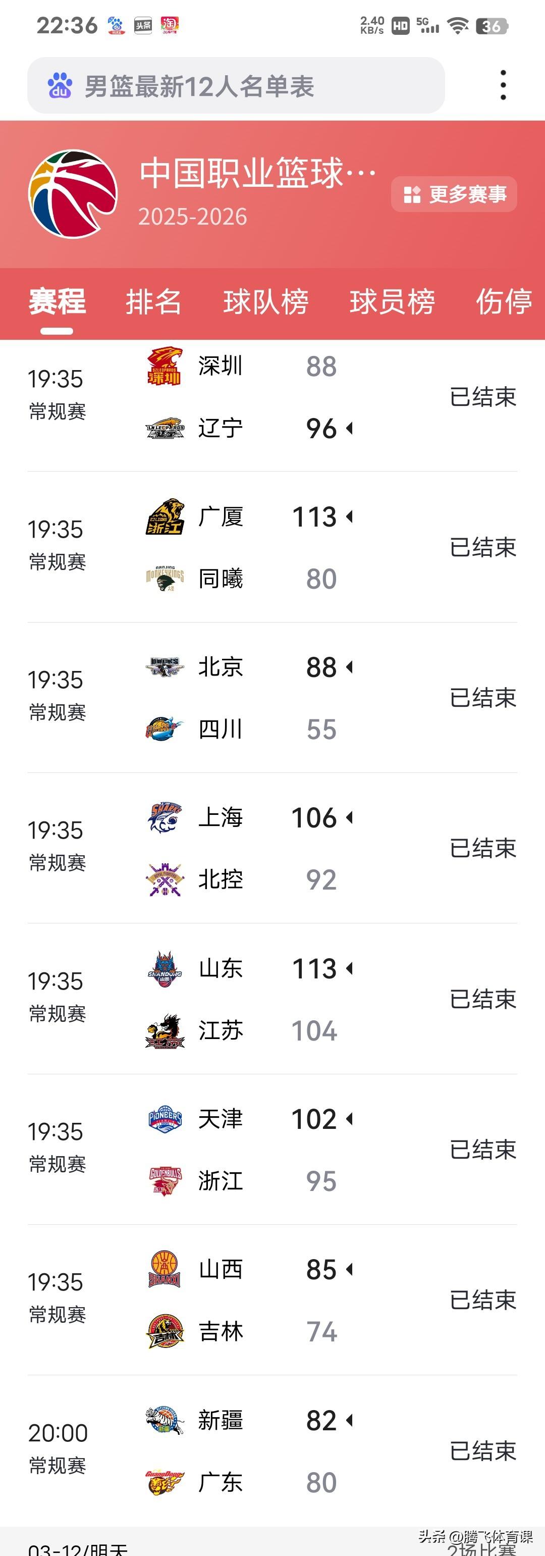 CBA常规赛第24轮最终战况,广东被逆转,辽宁客场爆冷击败深圳: 1.深圳88:96不敌辽宁 2.广厦113:80击败同曦 3.北京88:55大胜四川 4.上海106:92力克北控 5.山东113:104复仇江苏 6.天津102:95险胜浙江 7.山西85:74轻取吉林 8.新疆82:80逆转广东 CBA常规赛第24轮,深圳主场88:96爆冷不敌辽宁确实令人意外,而兵强马壮的广东队竟然客场阴沟里翻船被新疆逆转,两支广东球队显然赛前没有做足困难的准备。