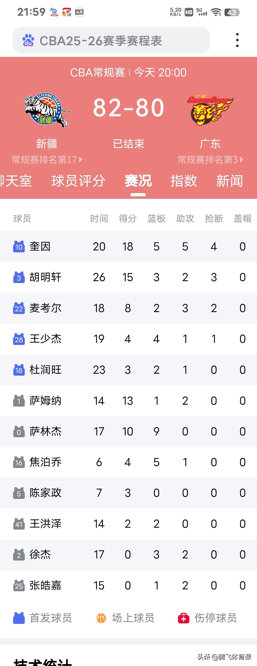 广东客场80:82遭新疆逆转,杜锋或调整战术核心。 CBA常规赛第24轮正式今