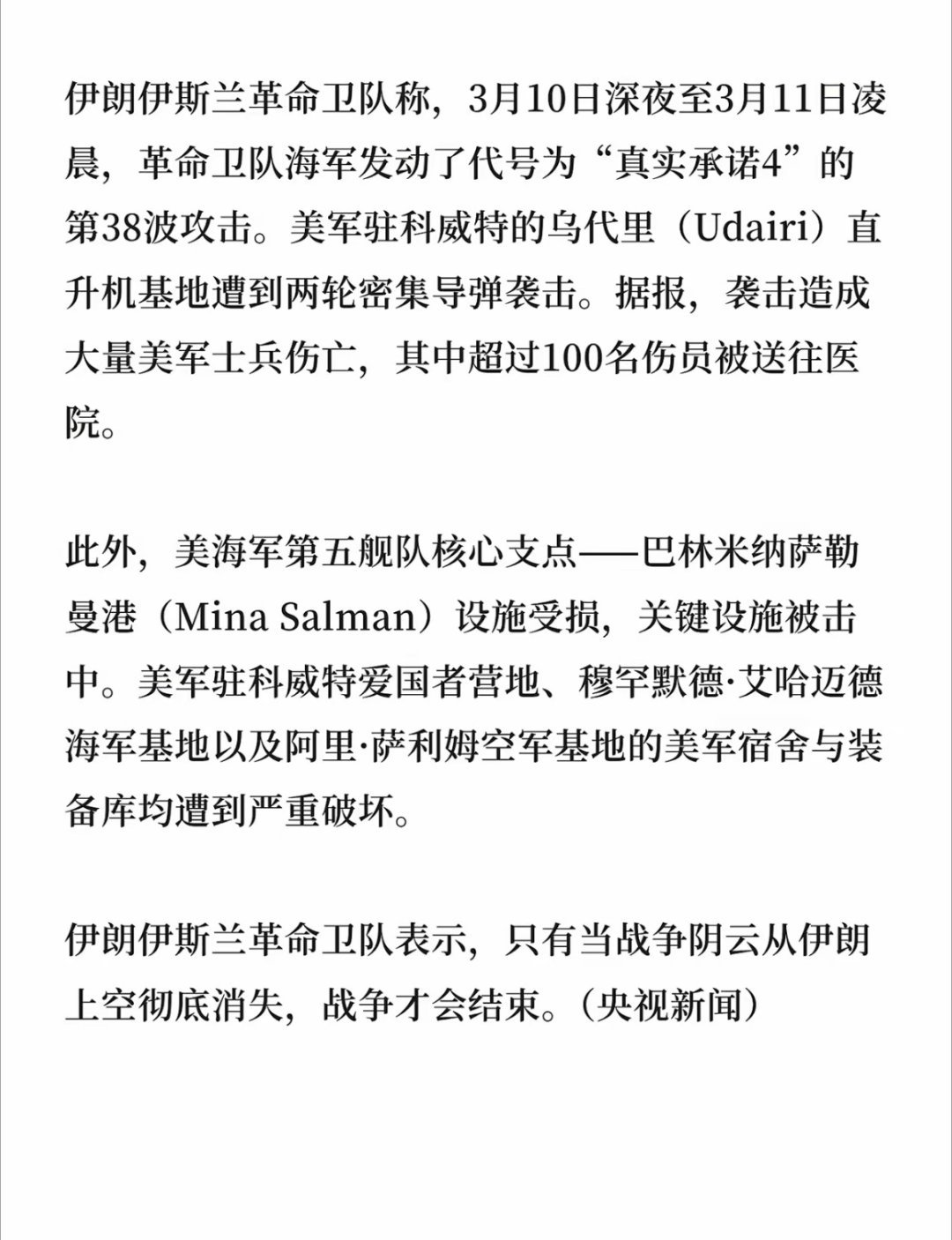 伊朗多弹头导弹袭击美军基地第38波!3月10日深夜至3月11日凌晨,伊朗直接出手