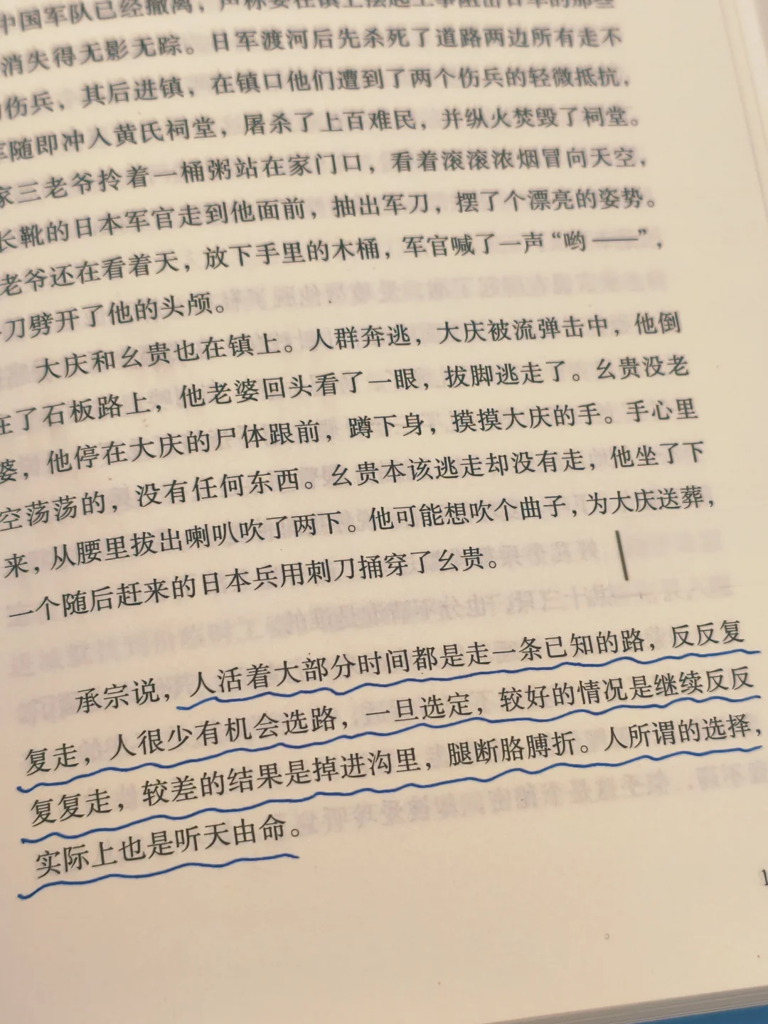 “人活着大部分时间都是走一条已知的路,反反复复走,人很少有机会选路,一旦选定,较好的情况是继续反反复复走,较差的结果是掉进沟里,腿断胳膊折。人所谓的选择,实际上也是听天由命。”