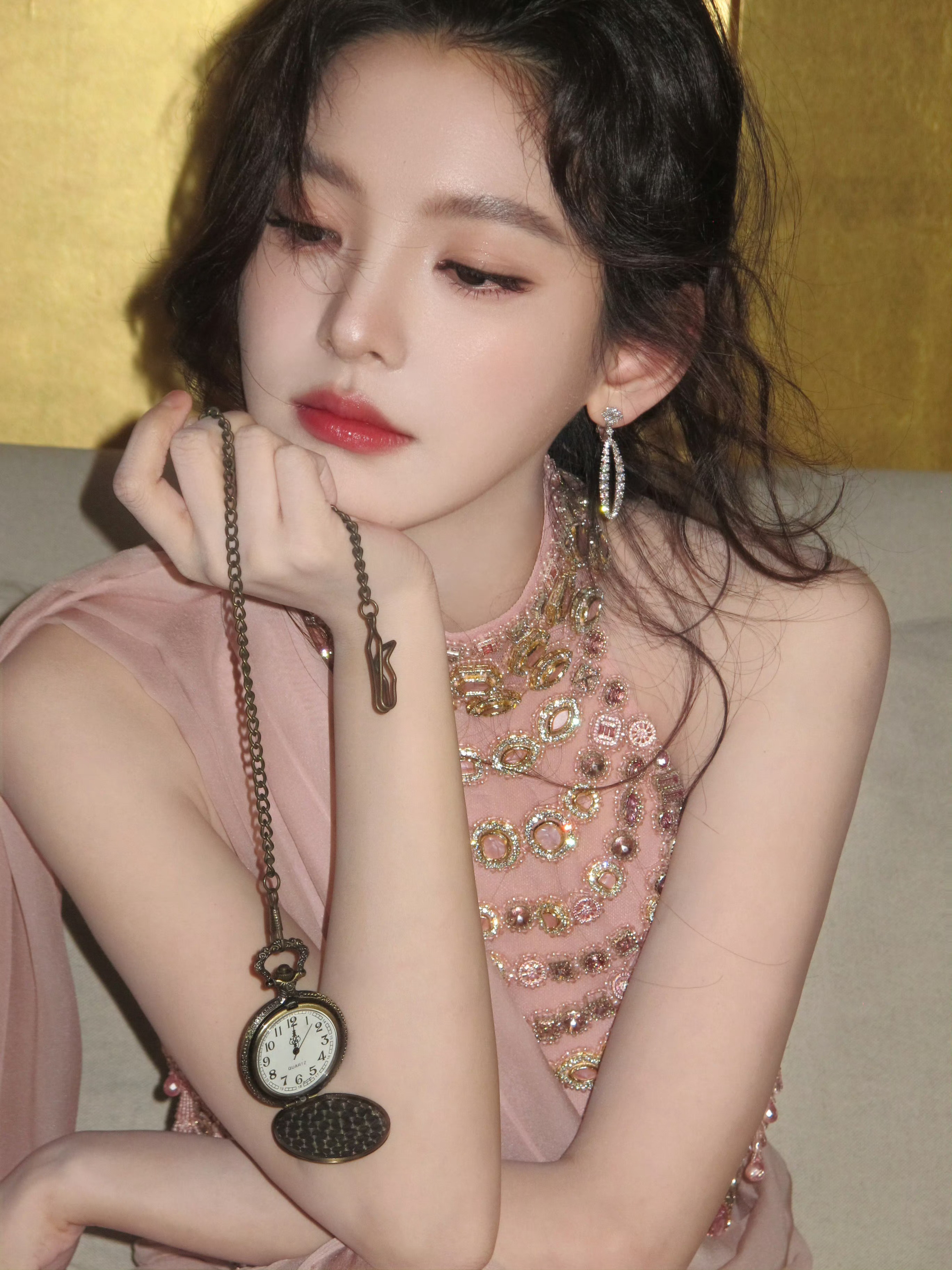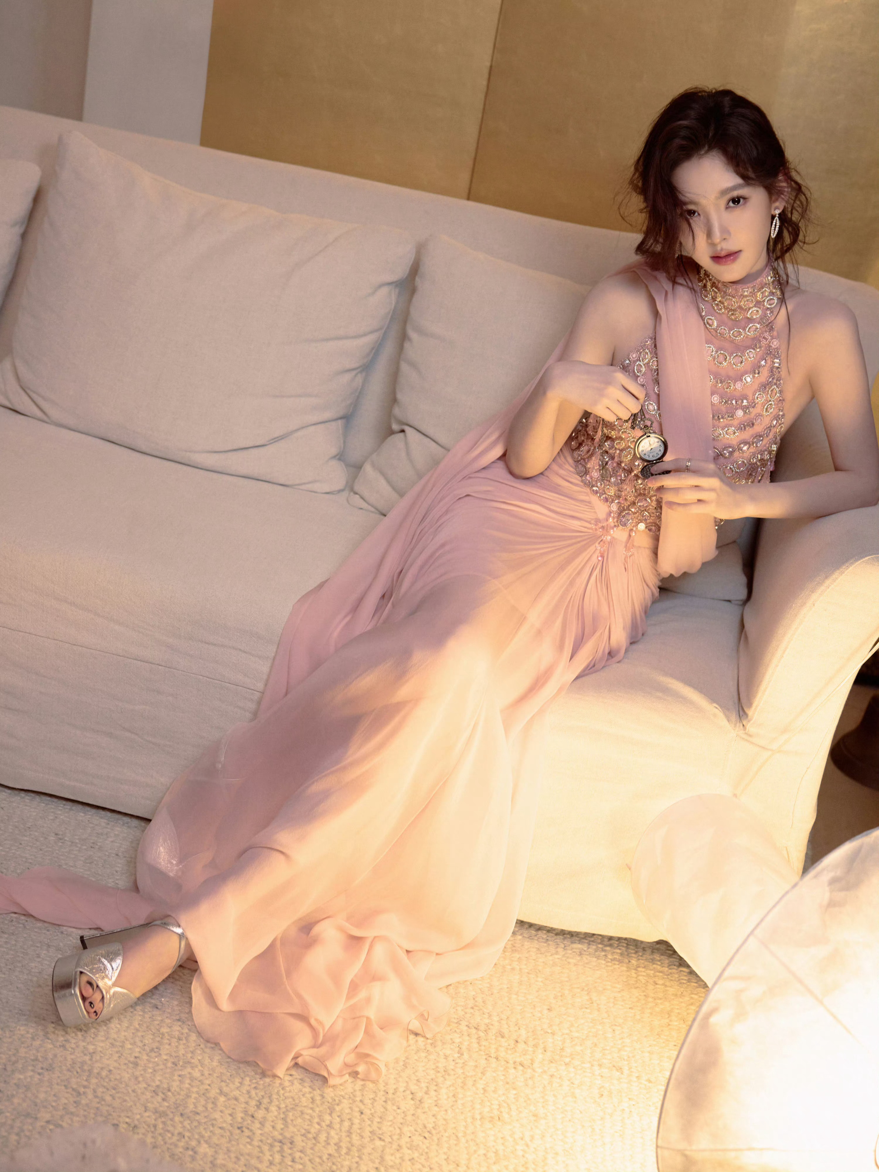 章若楠粉色纱裙粉色纱裙穿在章若楠身上,是恰到好处的清甜。纱质轻盈得像云,裙