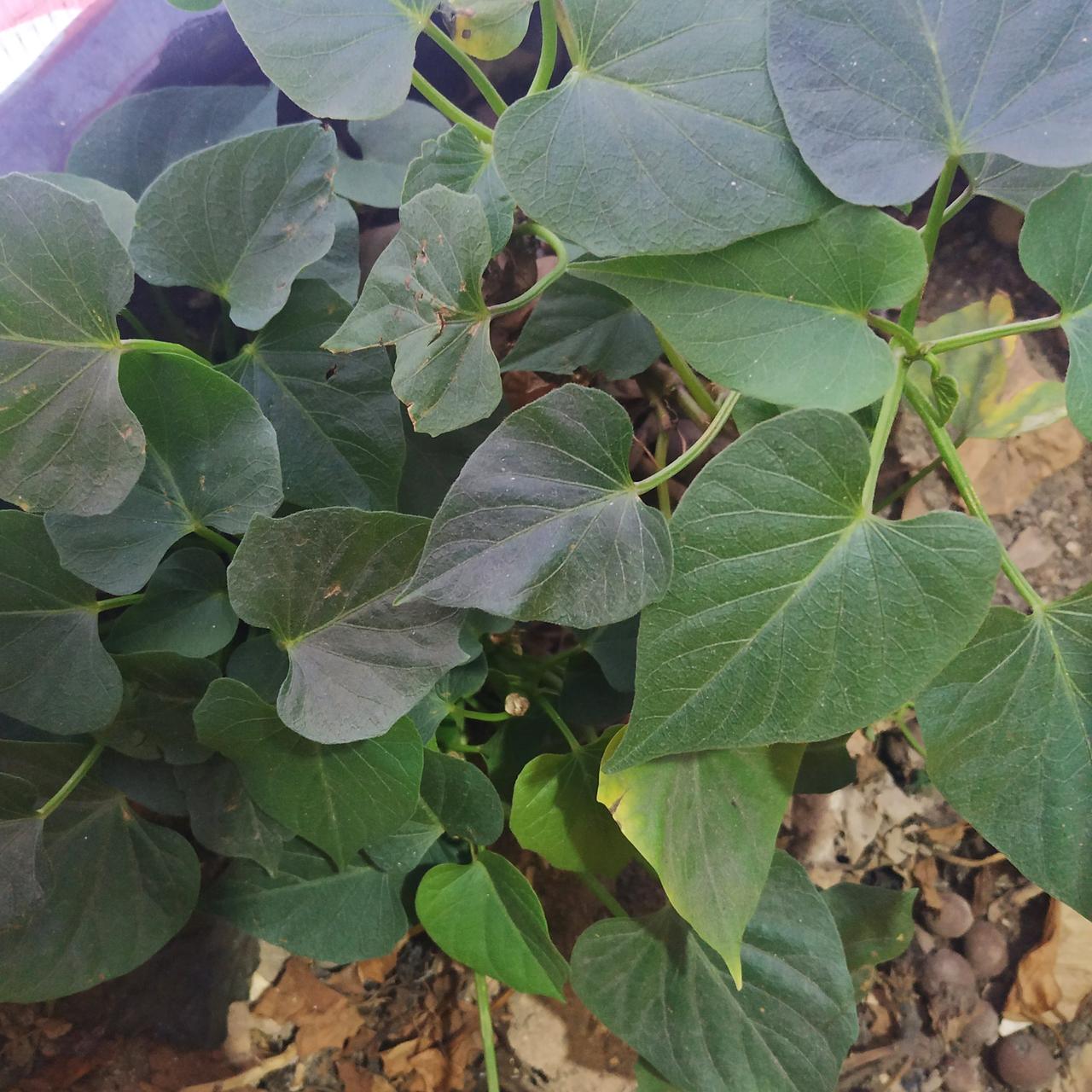 不得了 刷到一片青菜叶都能火上天 赶紧把我长在花盆里的地瓜叶拍了个照 哇咔咔