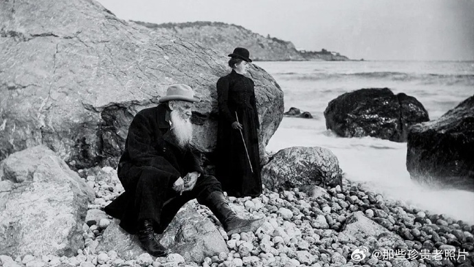 三张托尔斯泰的老照片p1为1848年,20岁的俄国作家列夫·托尔斯泰,p2为1891年,托尔斯泰组织救济饥荒,p3为1901年,列夫·托尔斯泰与女儿亚历山德拉在黑海岸边。