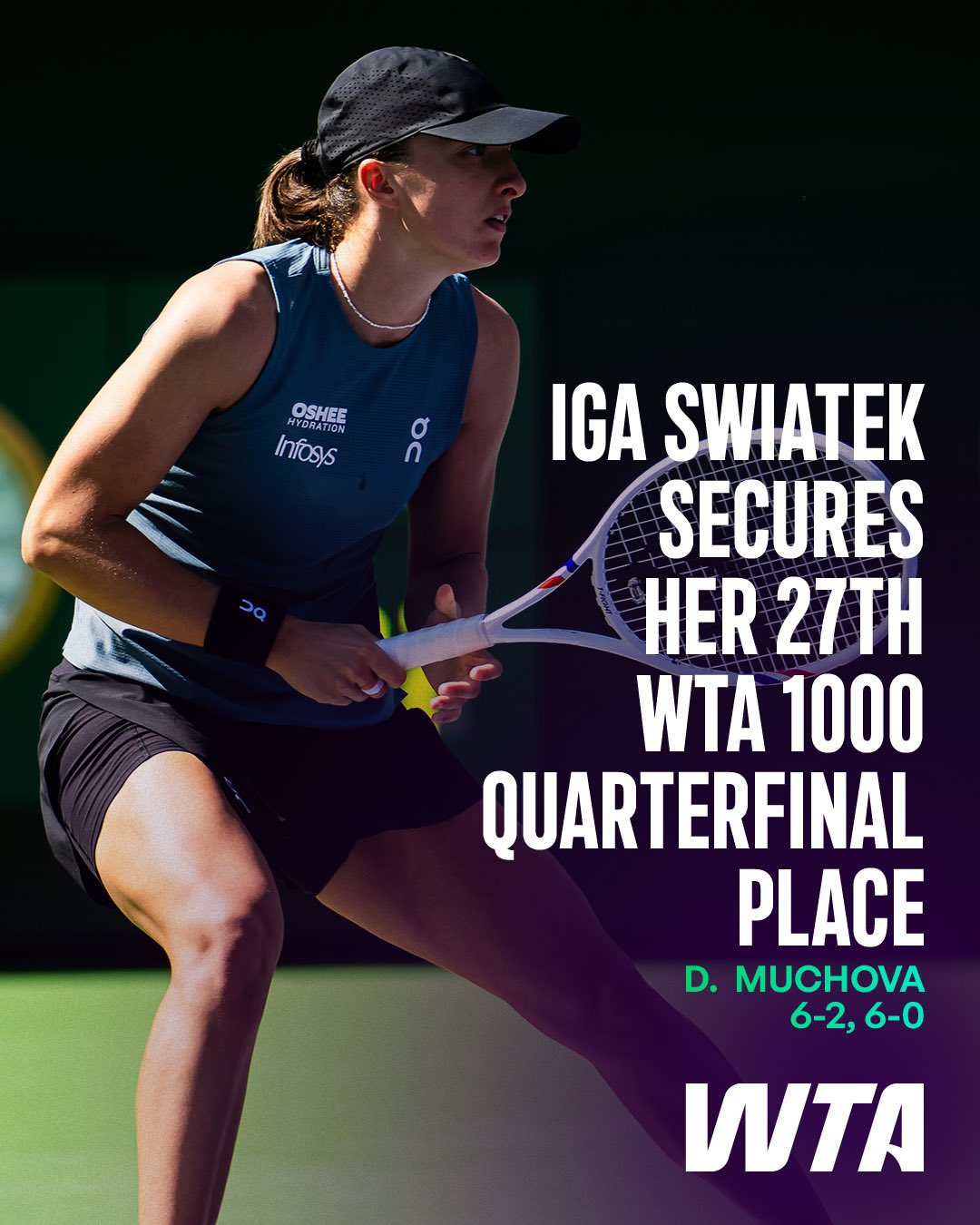 虎扑03月12日讯WTA1000印第安维尔斯1/4决赛:斯瓦泰克6-2、6-0轻取穆霍娃,率先进入半决赛。