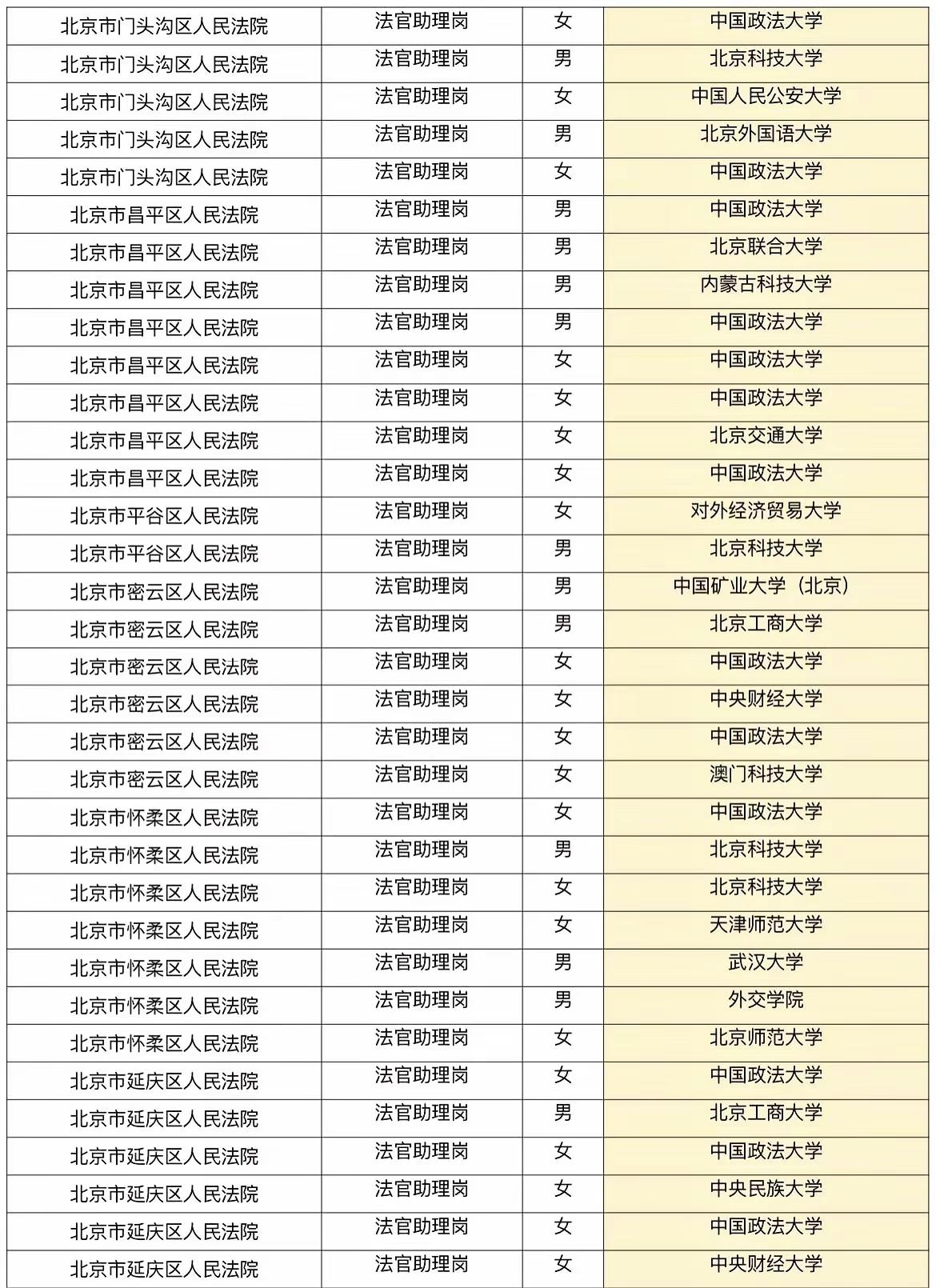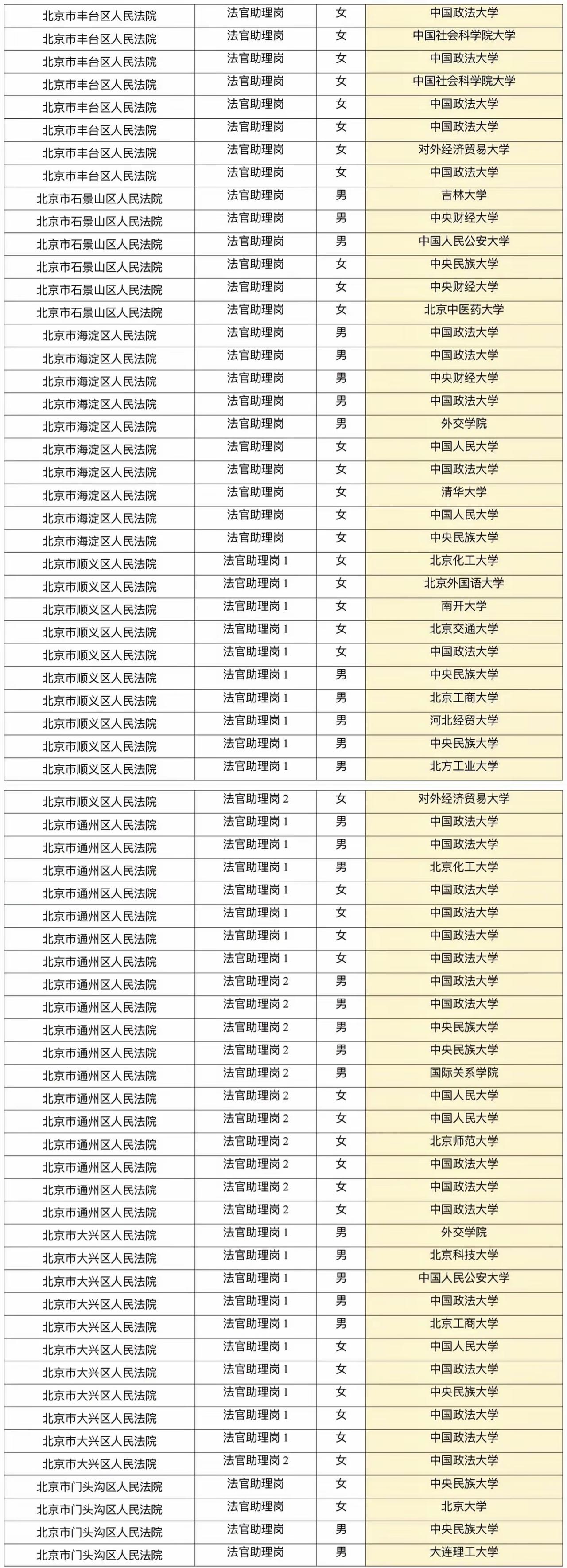 北京各区法院招聘的公务员都来自哪些高校?可以看出,还是政法类高校主导:中国政法大