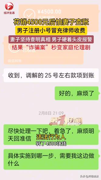 安徽芜湖,男子背着妻子偷偷花出去4500元后,才开始担心万一被妻子发现,自己怕是要凉。为了避免发生家庭大战,小伙注册一个小号,伪装成律师,以咨询为由,向该小号转账4500元。但三无小号却被妻子当成骗子,为了打消妻子的怀疑,男子只能硬着头皮去报案,给民警上演了一场“诈骗案”秒变家庭伦理剧的闹剧。 (消息来源:AHTV第一时间) 事情发生在2025年11月,位于安徽芜湖某地,有一小伙和妻子结婚后,家里的钱一直都是妻子管的,每一笔开销都要详细记录,查清流向。 小伙觉得这样明明白白的也挺好,妻子虽然管钱,却不会没收他所有的工资,而是每天记账,钱也不会不明不白地花掉,因此他一直乐于配合妻子对账。 直到这一天,小伙突然有了一笔4500元的私密开支,这才开始后悔从前配合妻子对账。 因为手里一直有钱,小伙从来没想过存私房钱,这就导致,他想偷偷摸摸买点什么东西, 基本是不可能的。 这一次,就是这样的情形。 小伙花了钱之后,才想起这笔花销是千万要瞒着妻子的。可这么大一笔钱,怎么才能糊弄过去呢?他灵机一动,想了个好办法。 小伙的行动力很足,很快,他就给自己注册了一个小号,并将其伪装成律师。紧接着,就拿大号和小号开聊了。 男子用大号似模似样地联系到小号伪装成的律师,表示需要调解。 之后两个账号就关于这个话题,稍微聊了几句。 眼看铺垫得差不多了,小号很快就进入正题。“律师”向男子表示,想要调解是完全没问题的,但是需要先付调解费4500元,态度很是强硬。“天真”的小伙自然一下子就信了。 2025年11月18日,小伙用大号给“律师”转账4500元,成功通过这种“左手倒右手”的方式,让自己多出来一笔看上去很正常的4500元的支出。 小伙这事做得大胆,看起来又天衣无缝,还真让他顺利躲过了掉马的危机,妻子果然没有揪着这4500元的咨询费刨根问底。 然而,纸终究是包不住火的。隔了好几个月,妻子再次开始查账,这一次,小伙可就没那么幸运了。 毕竟过了好几个月之前的账目,很多明细都记不清了,为了捋清账目明细,妻子带着小伙一笔一笔核对账目。 当看到小伙11月份那一笔4500元的所谓调解费,妻子有些迷糊了,也不记得家里请律师帮忙调解什么事情呀? 4500元一笔不小的数目,这笔钱花的,她怎么一点印象也没有呢? 既然记不清,那就要好好盘。 小伙知道,这个时候,伪造的证据就能派上用场了。他拿出早已准备好的聊天记录给妻子看。 他原以为这次还是可以蒙混过关,没想到,这一次妻子却怀疑上了“律师”,眼见“律师”收了钱却没下文了,妻子有些怀疑。 2026年2月8日,妻子试探着给律师发出消息:“尽快回一下消息吧,着急了,麻烦明天给准信。” “具体实施到哪一步,需要我这边做什么?” 妻子想要联系“律师”,可小伙哪里敢回复呢?于是,到了妻子眼里,这所谓的“律师”,在收了4500元的咨询费之后,失联了。 这不是妥妥的被骗么?妻子开始怀疑律师的存在。 她行动很快,查到“律师”的地址后,直接找去了“律师”所在的事务所。一打听就发现这“律师”果然查无此人,这让妻子越发坚定小伙被骗了。 丈夫稀里糊涂就被骗了4500元,这还得了? 妻子决定报警追回这笔钱,妻子的态度很坚决,可越是这样小伙的心里就越苦,他只想把这件事糊弄过去,一直含糊其辞,想要让这件事草草了结。 可这反而让妻子产生更多的怀疑。 小伙实在没办法了,只能抱着一丝侥幸心理,主动报了案,表示自己遇到了骗子。 然而,小伙那点小把戏哪里能瞒得住民警呢? 很快,小伙就彻底暴露了。所有的东西都是他伪造的,他不希望妻子发现那4500元的真正用途,引起家庭大战,才选择自导自演出这一场闹剧。 《治安管理处罚法》第二十九条第一项,故意散布谣言,谎报险情、疫情、灾情、警情或者以其他方法故意扰乱公共秩序的,处5日以上10日以下拘留,可以并处1000元以下罚款;情节较轻的,处5日以下拘留或者1000元以下罚款。 小伙为了隐瞒自己的花销,明知道所谓被“骗子律师”骗钱是自己自导自演的一场闹剧,却还是坚持报案,他以为这样妻子就能相信自己被骗,从而不去追究那笔钱究竟花到哪里去了。 殊不知,谎言不会成真,纸更无法包住火。小伙精心准备了那么久的谎言,终究还是逃不过被揭穿的命运。 而小伙也要因为自己无知的行为,付出一定的金钱和自由。 部分网友表示,小伙算计了那么久,如此隐瞒那4500元的去向,可到头来都是一场空。 恐怕,等小伙回家了,妻子依旧会坚持追究到底,那本该在去年11月爆发的家庭大战,虽然推迟了几个月,但恐怕不会轻易被平息了。 那么,针对这件事,大家有什么看法呢?欢迎留言讨论。