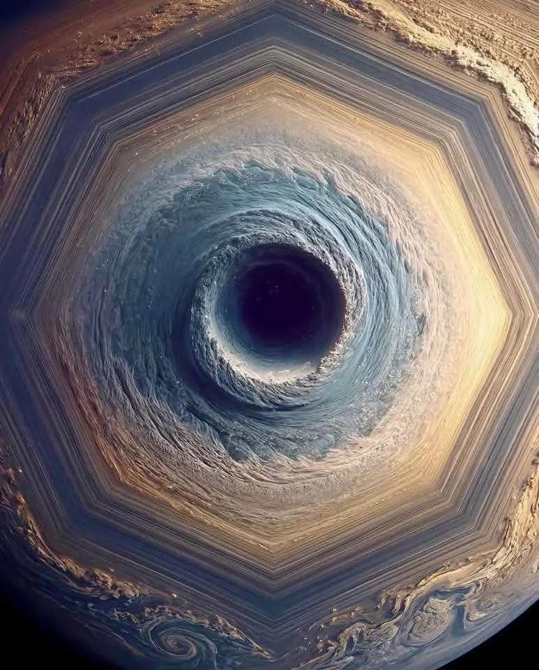 宇宙太神奇了,Nasa拍的土星八角形北极!!!深空照片 宇宙照 太空自然 太空矿