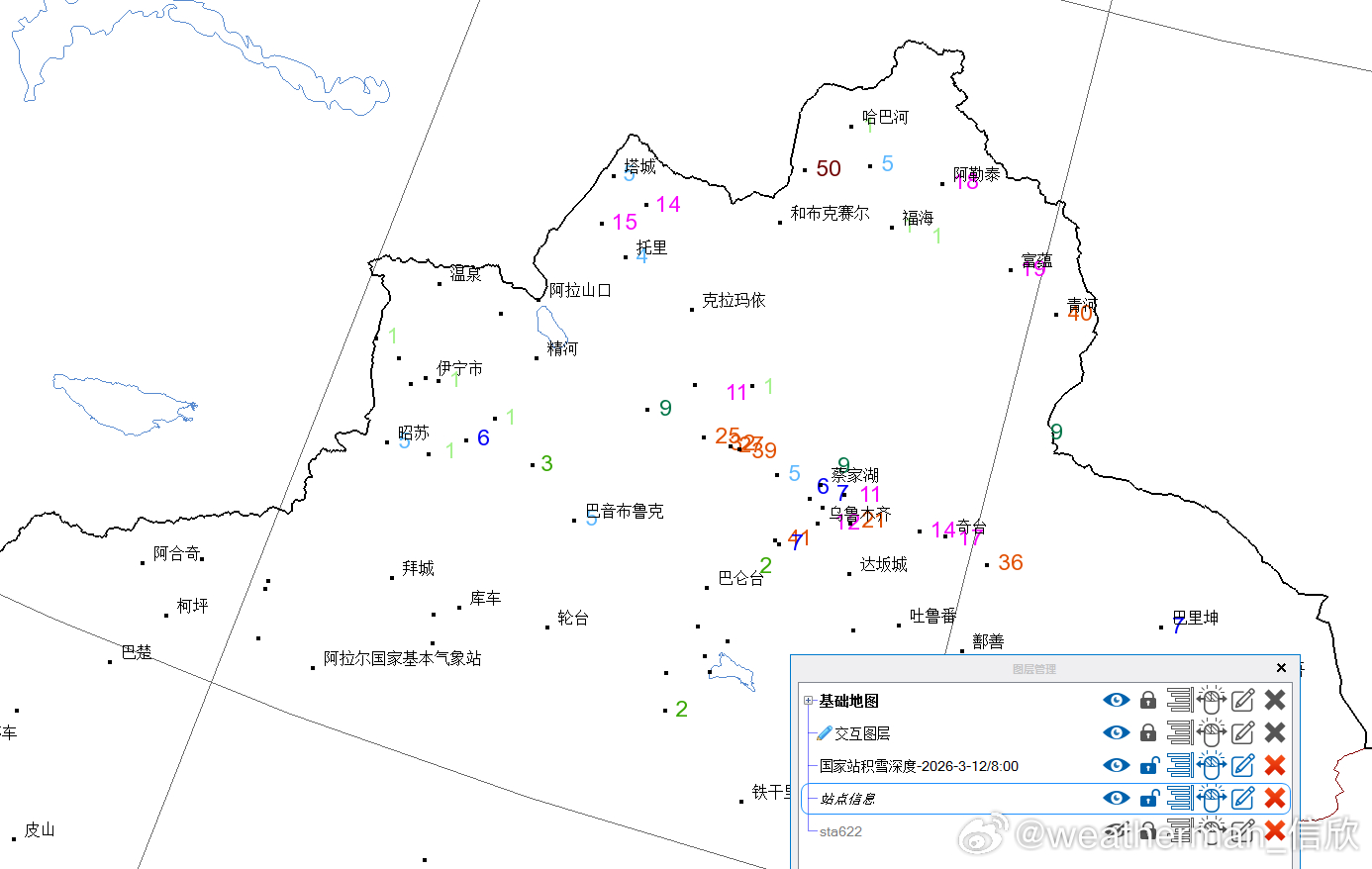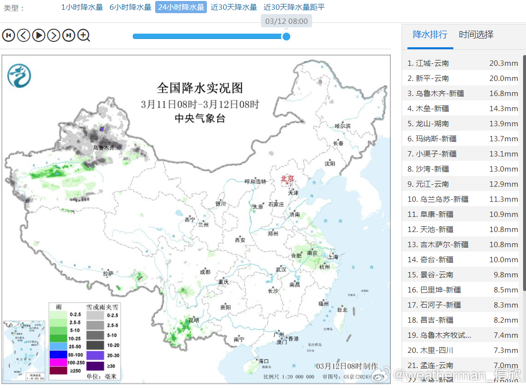 【雨雪】昨天到今晨,新疆北部因为冷空气影响,出现明显降雪,按照国家标准,天山沿线多地出现暴雪。比如乌鲁木齐老国家站,今晨积雪12厘米。新疆部分站点,新增积雪10厘米以上:吉木乃从40厘米增厚到50厘米、小渠子从25厘米增厚到41厘米、玛纳斯从18厘米增厚到39厘米,木垒从18厘米增厚到36厘米。
