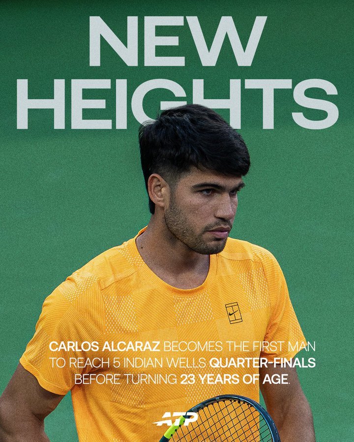 【史上唯一能在23岁前5次打入IW大师赛8强的球员】阿卡在2022至2026连续5年实现了这一点,几位同样年少成名的前辈张德培、贝克尔和纳达尔,都是4次。