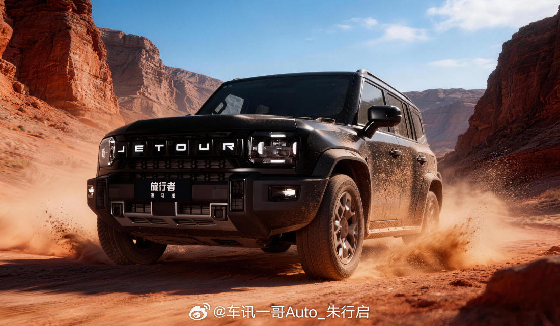 捷途旅行者骏马版同样是保持黑武士的方盒子外观造型,整体采用黑化风格,包括黑色车身、黑色前格栅、黑色外后视镜壳、黑色轮眉和黑色轮辋等。尺寸部分,捷途旅行者骏马版长宽高分别为4795/2006/1870(1880)毫米,轴距为2800毫米。