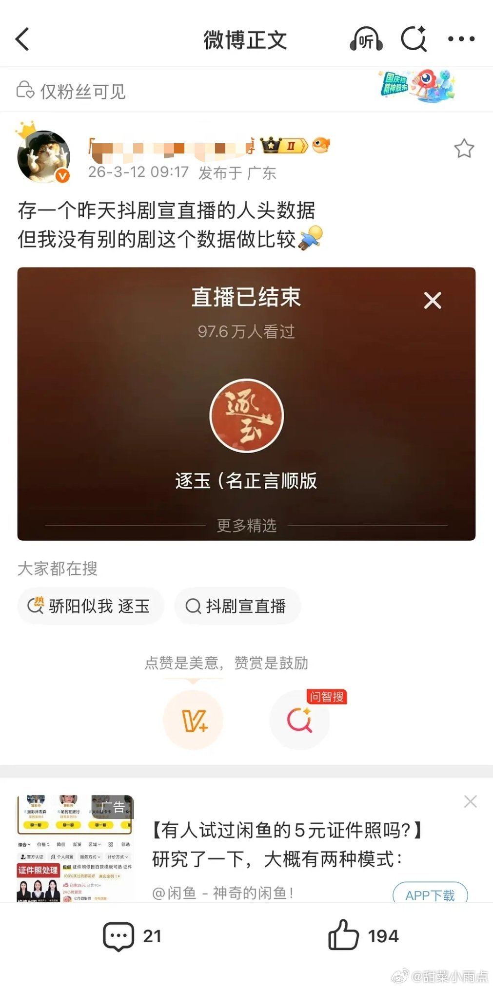《逐玉》这部剧到底还有多少笑话要看?粉丝发逐玉剧宣直播的人头数据,评论区全是其他剧宣截图,完全被碾压…粉丝紧急艾特让“快删一下”🌚我们煮鱼又吹失败了