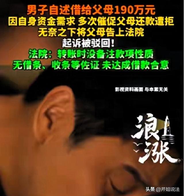 广西,一男子的父母当初做生意资金周转困难,就找儿子借钱,男子借了190万元给父母,但是之后父母再也没提还钱的事。后来男子缺钱,多次催促父母还钱,但是父母一直拖着,也不说还、也没说不还。男子很着急,无奈就把父母给上诉了,要求他们还钱。可是悲催的是,当年借钱,男子并没有备注借款信息。 因为缺乏借款信息,如备注出处、用途等,男子也拿不出借条,相关部门最后竟然驳回了男子的诉求,这190万等于白送父母了? (本案例参考来源:红星新闻) 林先生对父母也是很大方,早些年父母做生意,遇到了难处。父母就找到儿子,希望他可以帮忙周转一下。 眼看着父母很着急,茶饭不思,生活困难,林先生作为儿子也不能置之不理,二话不说,就准备帮父母一把。 当时林先生先取出了自己的全部积蓄,前前后后一共凑出了190万元,全都交到了父母手里。 本来就是一家子,还是亲生的骨肉情,林先生认为,一家子也不说两家话,也没让父母打欠条、也没有签下收据。 毕竟,这都是至亲的人,不用这么见外吧,正所谓,亲情不需要用金钱来衡量。 可是,随着时间的推移,父母的生意也逐渐好转,而对于这190万元,父母却缄口不提。 如今,林先生这边也在做生意,也遇到了资金缺口,着急用钱。林先生就想要跟父母提一提当年发生的借钱的事情。 林先生去找父母商量还款的事情,谁知道,父母却面露难色。 本来林先生以为,既然亲生的儿子都开口了,父母也该自觉点吧。但是父母给出的答案是:真没有。 后来林先生只能当面去找父母要钱,毕竟这些钱都是自己辛辛苦苦挣来的,你们到底手里有没有,有就还给儿子不行吗! 但是父母却找各种理由推脱,总之就是,一毛不拔,一分钱都不肯还给儿子了。 思来想去,林先生也是催的急了,也害怕了,没办法,只能将自己的父母给上诉了,希望能够要回来这笔钱。 这可不是林先生较真,要说还是自己亲生父母不自觉,根本不顾儿子死活,这就是薅上儿子的羊毛了? 相关部门是怎么审判的呢? 工作人员查看了林先生提供的证据,全都是转账凭证,但是备注非常模糊,没有借条,也没有说出借给谁,这些关键证据缺失。 另外还有一点,早些年林先生的母亲写了还款承诺书,但是落款只有母亲一个人的签字,母亲后来跟父亲也早就分居,二人也不常联系,这份还款书的分量,力量日渐削弱。 所以说,在亲情关系里,转账可能就意味着赡养、赠与或者共同经营,林先生也拿不出借条,转账也没有备注,这个在法律上很难判定为“借贷合意”。 最后,一审、二审全都驳回了林先生的诉请。 民间借款的时候,转账要做好备注,另外还要打好欠条、收据,及时把丑话说在前头,这样才不能产生纠纷、矛盾。 亲生父母找儿子借款190万元,但是没有转账备注,也没有借条,父母赖账不还 ,这个应该怎么判定呢? 这样的情况确实会被认定为“举证不足”而被驳回诉求。 根据《民典法》规定,自然人之间的借贷合同,自贷款人提供借款时即成立。如果没有书面约定,需要结合资金交付、借贷合意综合认定。 借款的时候,如果硬证据缺失,如借条、备注等缺失,证据链不完整,就难以证明借贷合意,可能就要面临巨额财产损失的风险。 面对巨款被父母借走还不偿还,只能优先去要求调解,让父母尽量退还部分,分解自己目前的压力。 总之,至亲的亲情也不能被滥用,保护好自己的小家庭才是生活的底线。 亲兄弟也要明算账,这其实是一种大智慧,任何一段关系,彼此都要留个底线。要知道,法律讲究的是证据,就算客观事实真实,但是缺乏了有力的证据,也很难维权。 这不仅是保护自己的财产,更加是保护自己的权益,避免之后引来麻烦事。 而本案中,亲生父母赖账,带给自己信任崩塌,甚至还带来较大的焦虑和痛苦,这一点,也确实让人感到很无助。 看完本案之后,大家内心都作何感想呢,不妨评论区留言讨论。