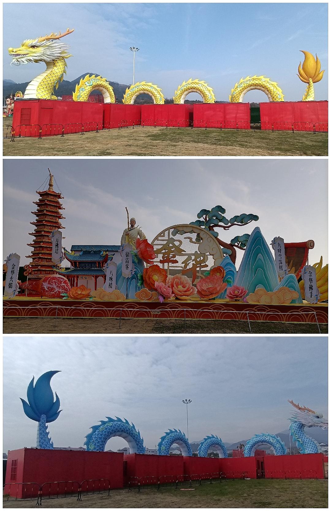 金华信仰有个特点,可能是受诸葛亮八卦的影响吧!卜卦算命多而且摆上台面;金华山双龙洞边上的金华观(图1),进门内的赤松真原(图2),里面供奉的黄大仙(图3-4),全是八卦(图5),附近的金华山非遗馆,金龙盘旋,气势非凡(图6上)。 寺前皇,听名字不俗,有气派,就要去看一下是什么,结果只看到了一个牌坊[捂脸](图6下)。路过金华山双龙灯会(图7-9),那就进去看看吧!虽然没有赶上当地的元宵灯会,但这里的灯基本上让我们欣赏了,非常惊艳很漂亮,特别是双龙拱珠,特气派(图8), 还有一个美女灯,特精致,栩栩如生(图9)。 金华 人文 古风 旅行推荐官