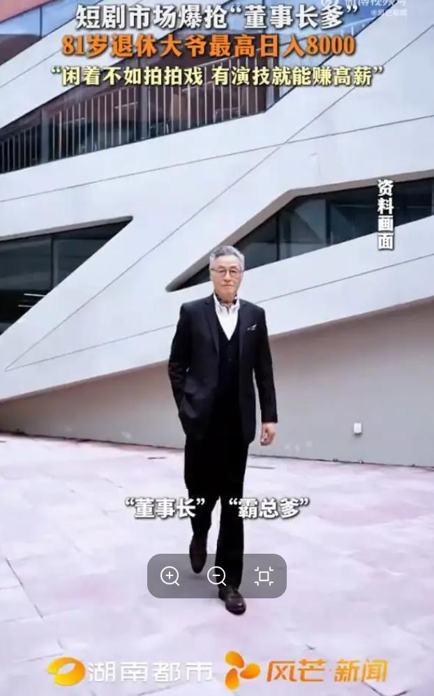真绝!81岁退休大爷专门演霸道总裁他爹、家族董事长,最高竟日入8000! 大爷一头银发、气场拉满,往那一站就是妥妥的商界大佬,不用化妆就很有戏。现在短剧全是豪门爽剧,年轻演员演不出威严感,大牌老戏骨又太贵,退休大爷们时间自由、演技自然,直接成了剧组香饽饽。大爷自己也很实在,觉得闲着也是闲着,拍拍戏还能赚高薪,太香了! 网友的调侃更是层出不穷,“建议33岁失业的去跟大爷学学,这才是铁饭碗!”“别人退休遛弯,我爹退休日入8000,差距太大了!”“短剧缺的不是演员,是这种自带气场的董事长爹。” 当然日入8000是少数,但这波银发再就业真的太飒!谁说老人只能带娃跳广场舞,照样能在片场当顶流。