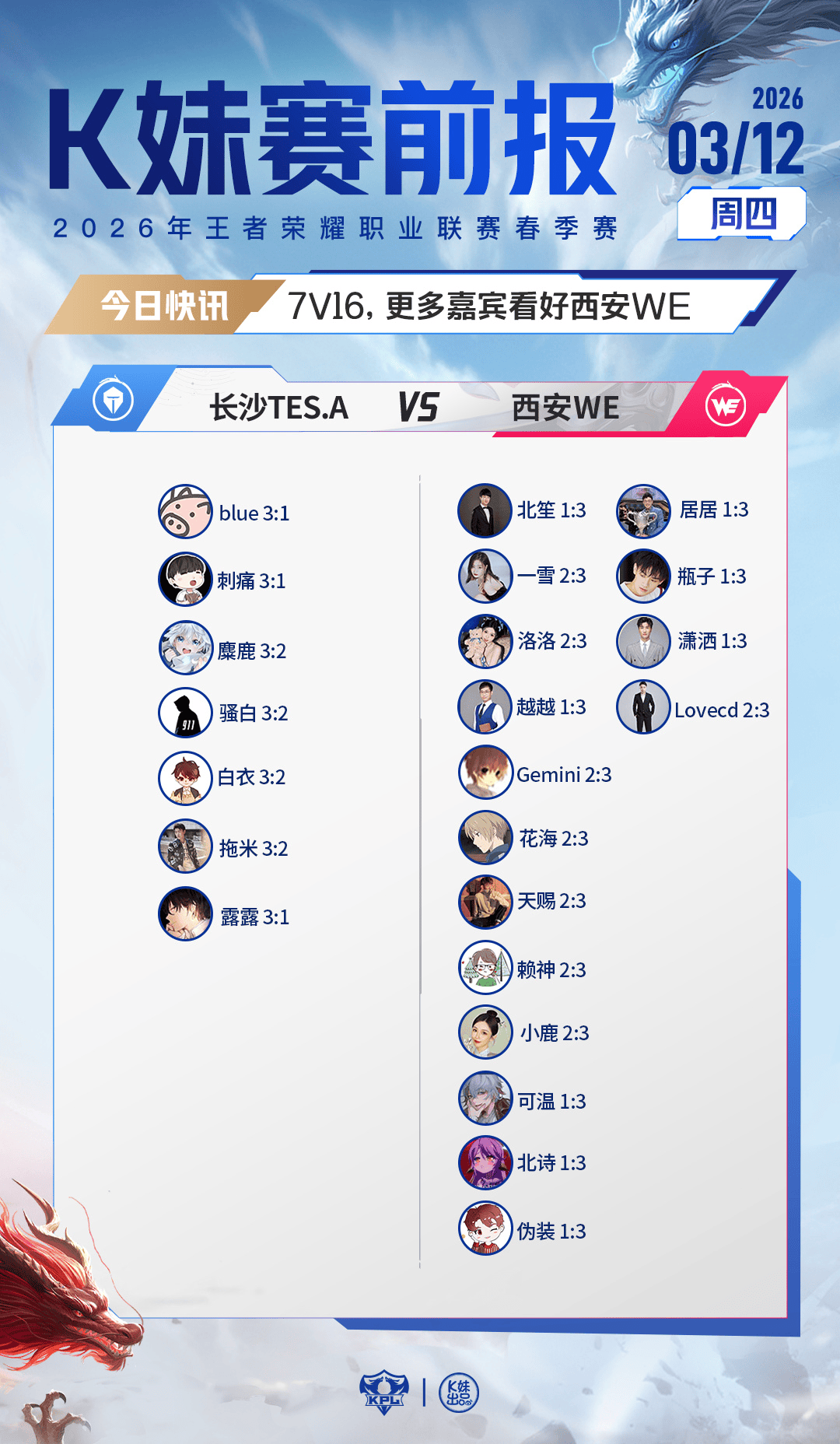 2026KPL春季赛常规赛第三轮W2D2比赛[K妹赛前报]送达!