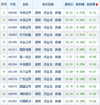 什么情况?今天十大头部券商股呈现二强八弱的艰难探底走势。 国信证券今天收盘上涨0.33%,居头部券商股涨幅排行榜第一名,招商证券收盘上涨0.06%,居头部券商股涨幅排行榜第二名。其它8只头部券商股悉数收跌。跌幅最小的是中国银河,收盘下跌0.28%,跌幅最大又是市值一哥中信证券,收盘下跌0.65%。 头部券商股这种阴跌走势的确很磨人,这种股价,这种估值,似乎调整的空间不大了,一旦外围局势稳定,不排除随时结束调整的可能。