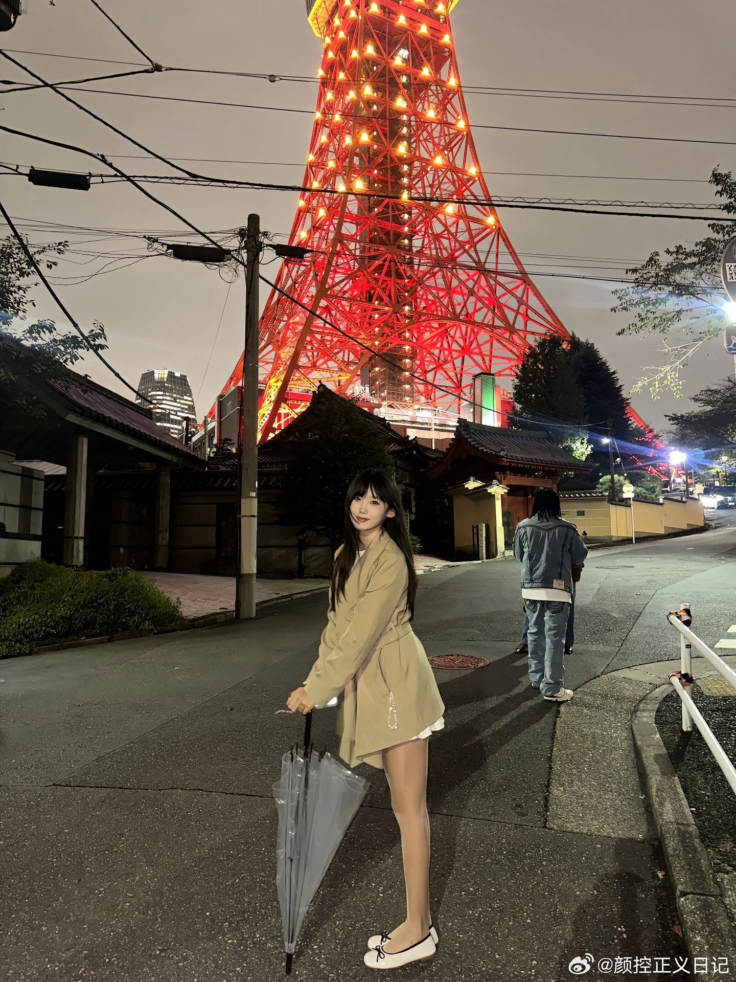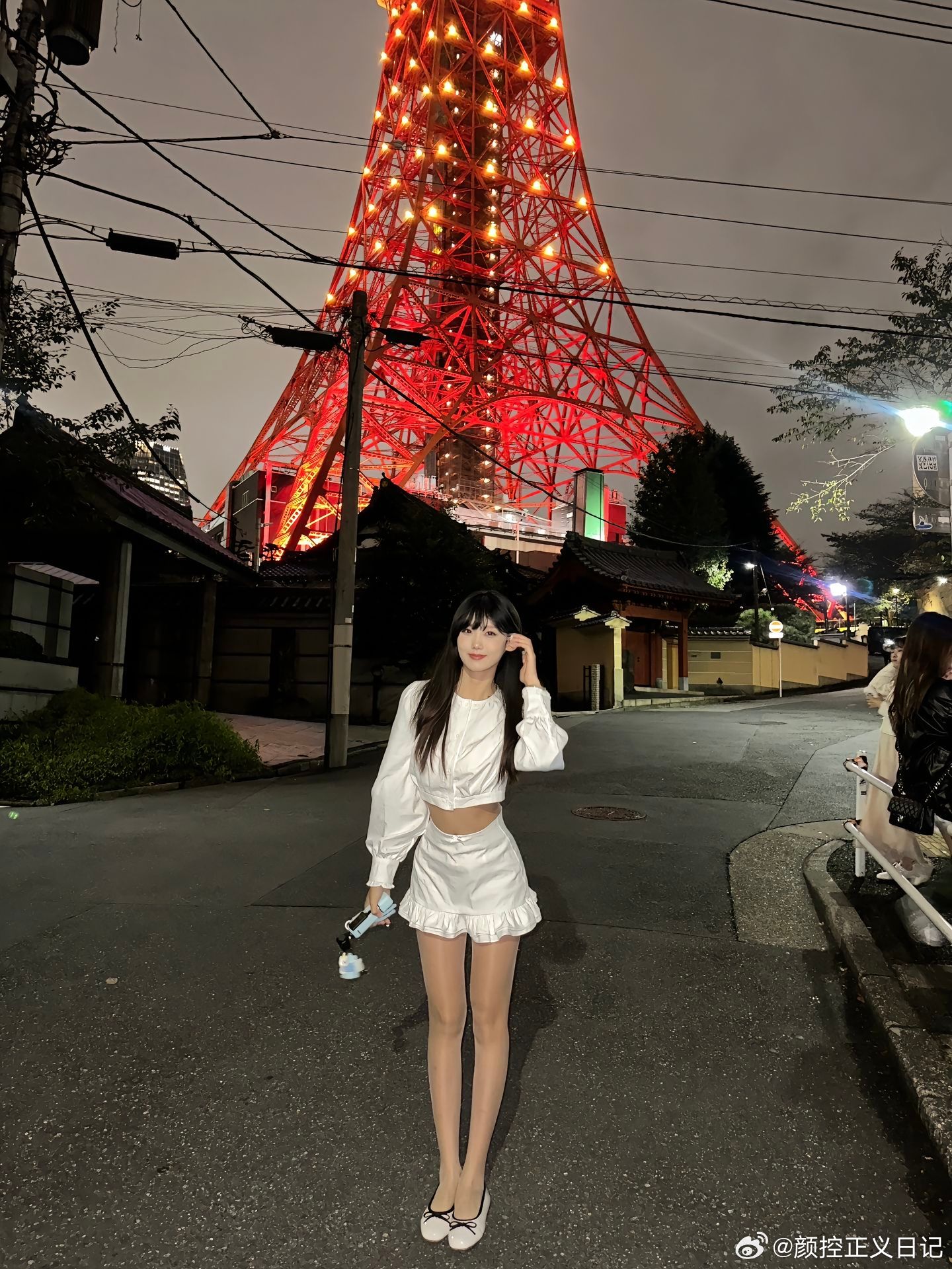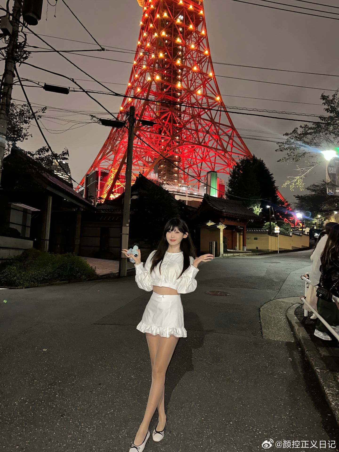在东京塔下,少女与秋叶的邂逅。日本美女新内真衣写真集系列,一袭绿裙增色,若隐若现