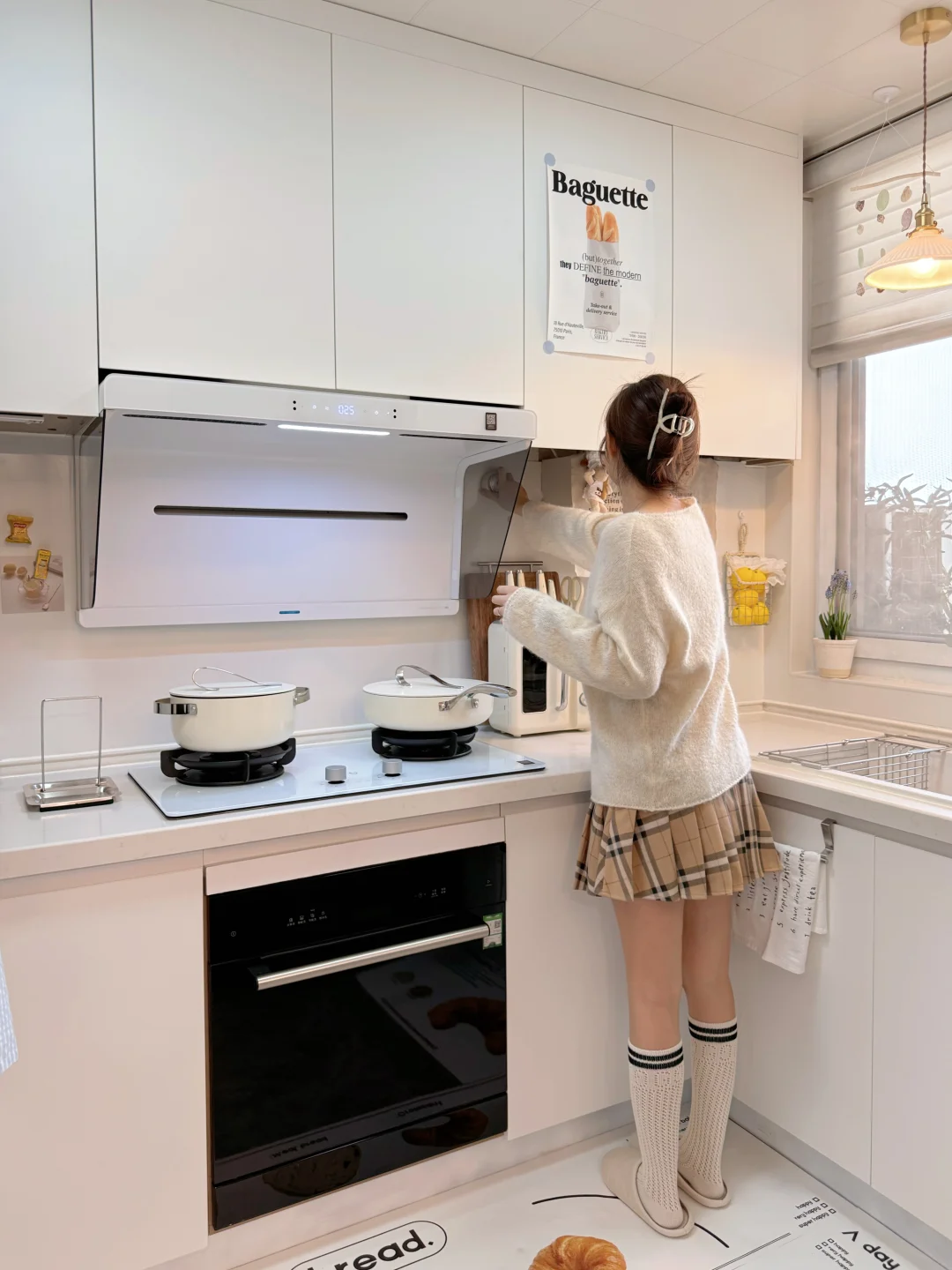 纯白机身和韩系白厨房的清爽风格浑然一体,