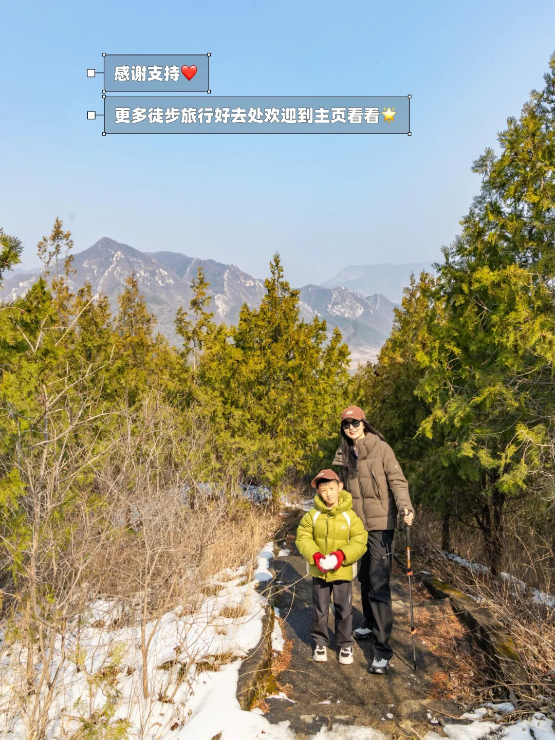 2026年初春第一场徒步🥰选择了视野好、风景绝的大峪山‼️这次带着7岁的雪球和60多的老妈一起上山👍🏻老规矩,攻略给大家写好啦🤗直接拿走抄作业📝