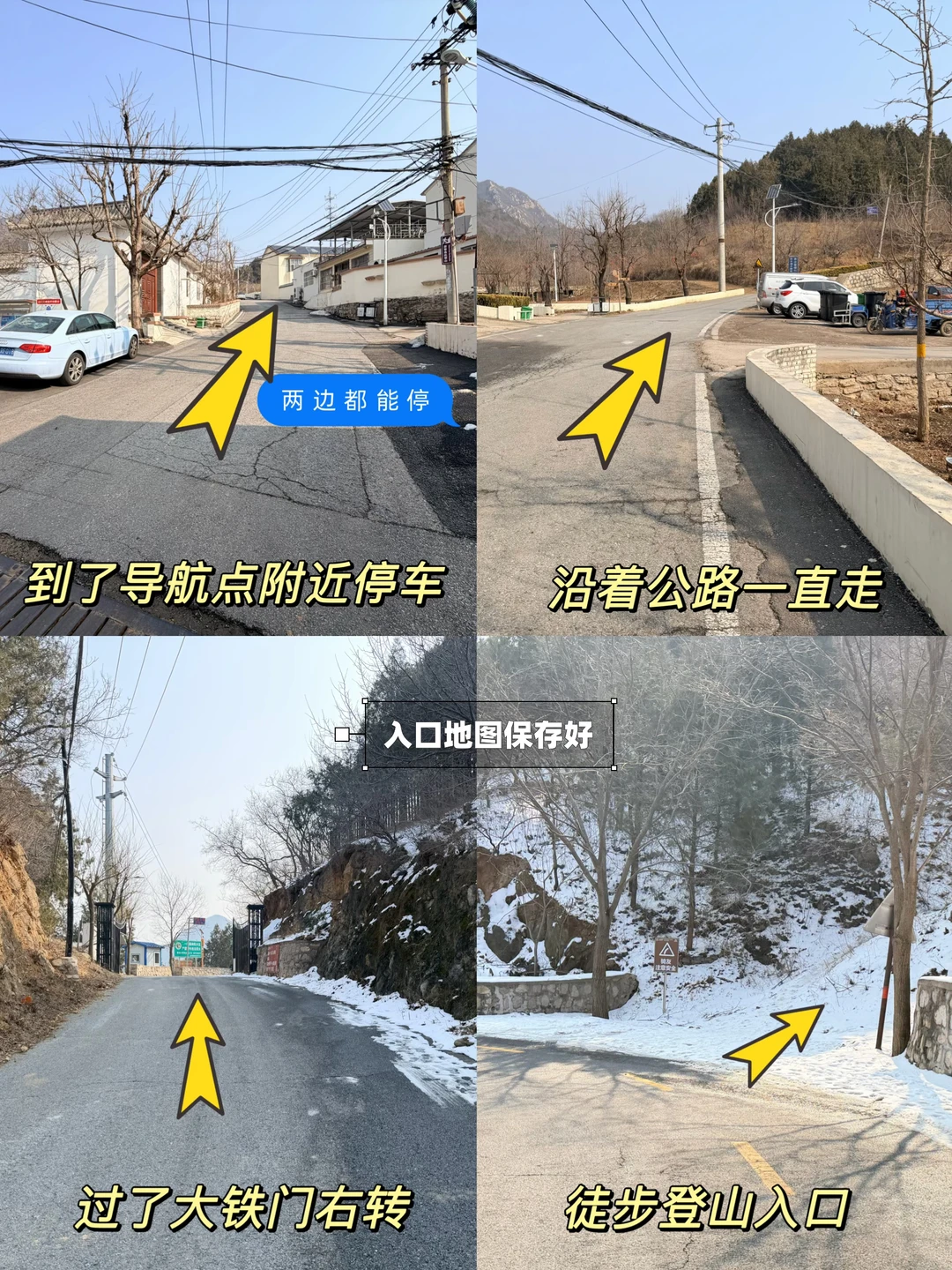 ⭕️登山入口:目前主入口没开,可以绕后山上。村委会附近停车,顺着马路一直走200米就是登山口(有指示牌,爬一段土路就可以汇到徒步的主路上
